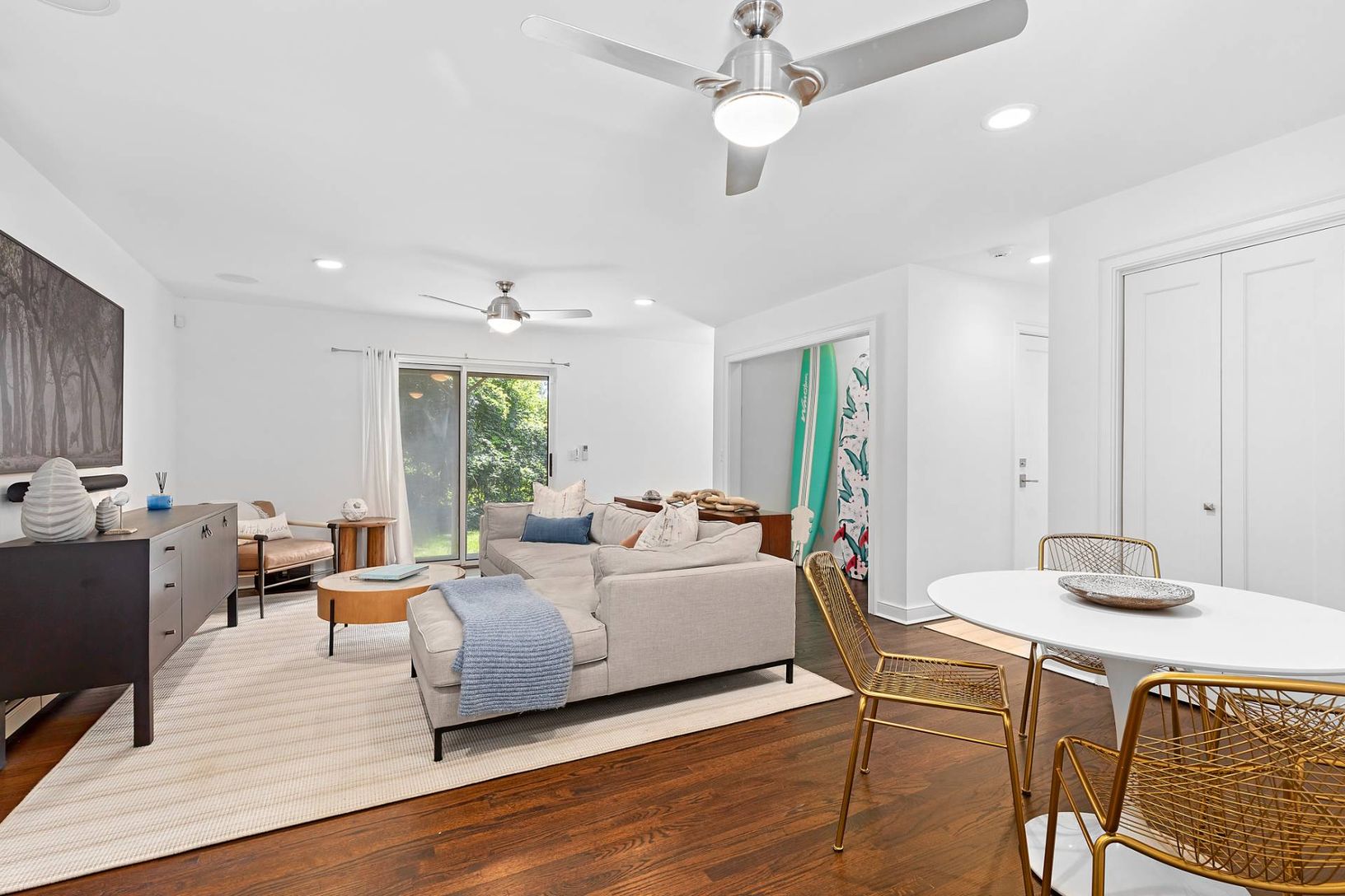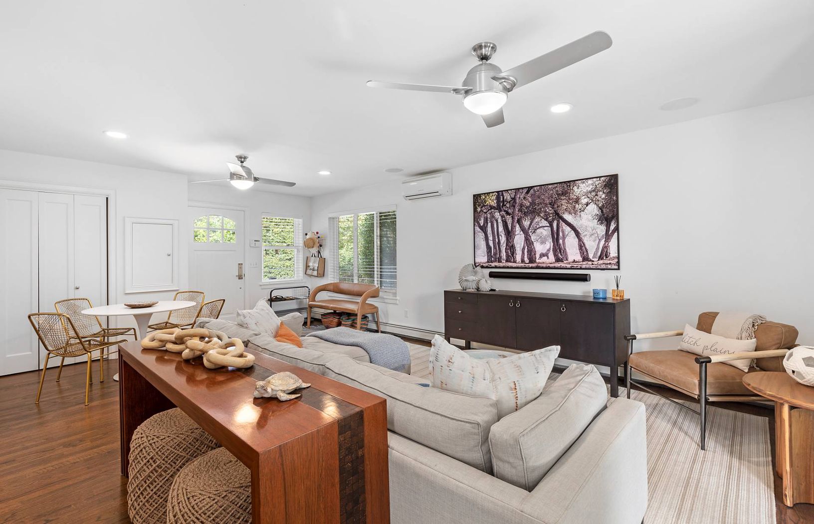 Tucked away on a private flag lot in coveted Ditch Plains, this newly updated beach house offers the perfect blend of comfort, style, and coastal living. Just one short block from the ocean, the home is surrounded by mature trees and lush landscaping, creating a serene and private setting. Inside, fresh and inviting living spaces await. The entry level features a welcoming family room with a TV lounge area, a full bathroom, and two guest bedro
