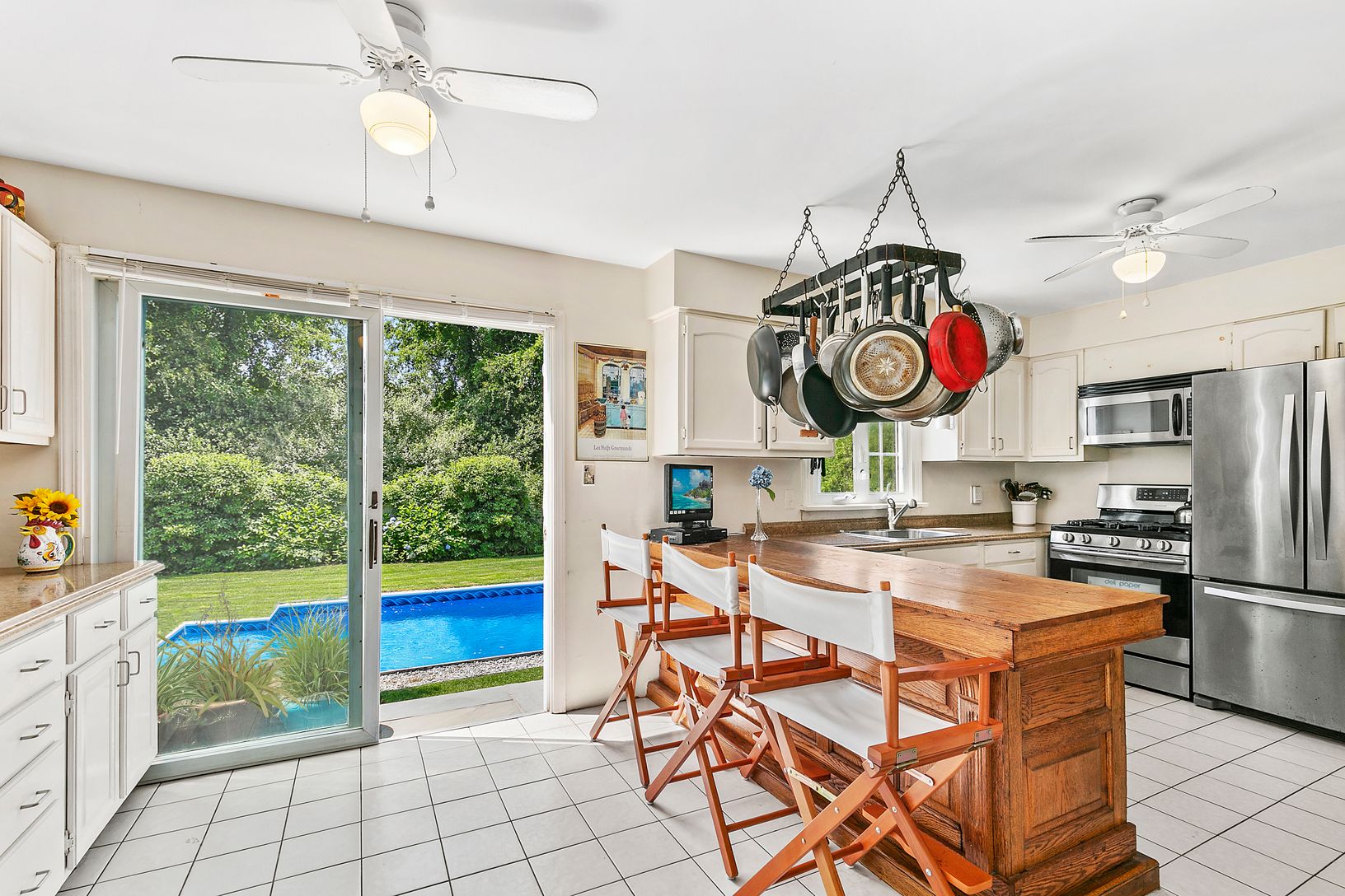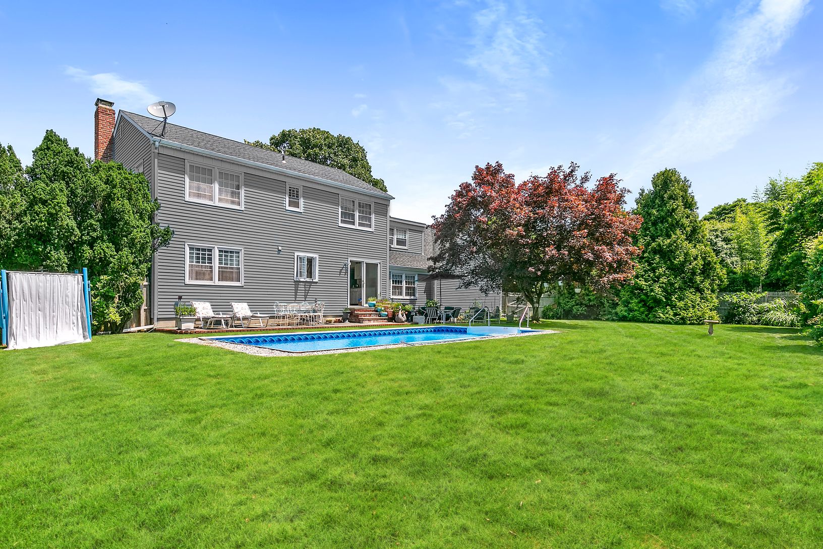 This traditional home is situated just a few minutes away from Southampton Village and ocean beaches. The first floor features a generous living room with fireplace. half bath, and an additional sitting room. A separate dining room leads into the spacious kitchen overlooking the patio and pool. On the second floor the home boasts four bedrooms and two baths. Located on a generous half acre , the property is beautifully landscaped and maintai