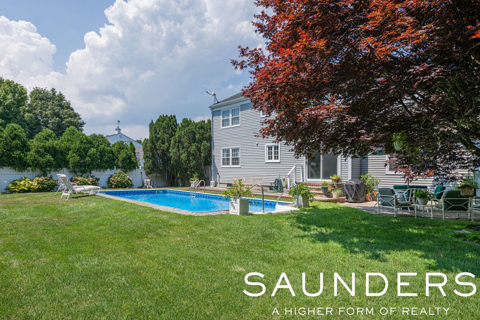 The polished exterior of this four-bedroom, two and one half bath Traditional, with its impressive curb appeal and beautiful landscaping, offers the perfect frame to fill with your own personal vision. The comfortable interiors include a light and bright eat-in kitchen with a gas stove, wall oven, stainless appliances, and sliders that lead to the private backyard with a sparkling blue pool. Adjoining the roomy kitchen is a formal dining room,