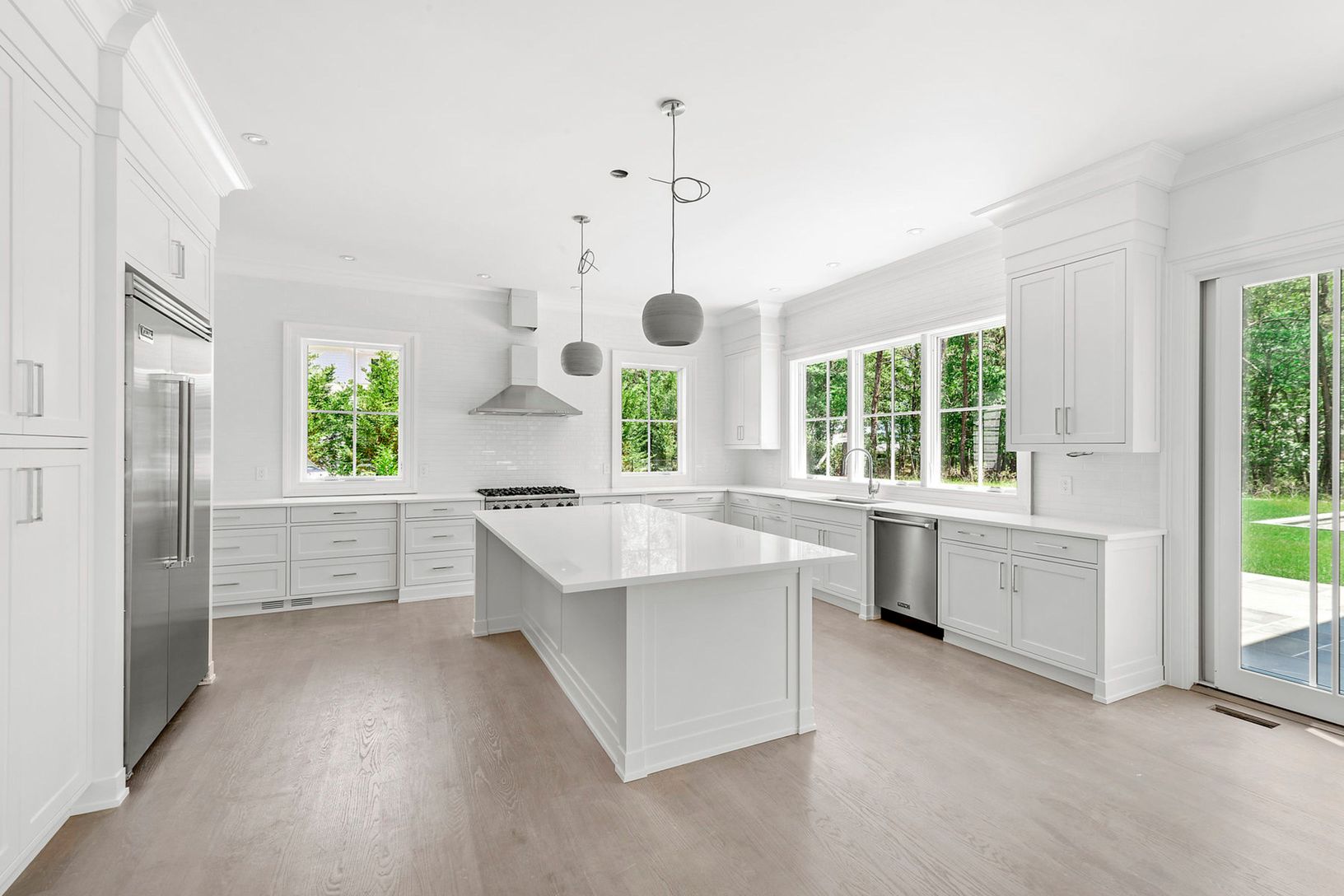 This open-flow, new construction is designed for those looking for a fresh architectural exterior with clean, modern finishes. The designer team has taken the same high-end finishes they typically use in their $5MM constructions and used them in this $3MM home (reduced to $2,595MM) for a unique offering. This home features 4550 square feet of finished living space (4000 upstairs plus 550 finished lower level), plus room to expand an additional