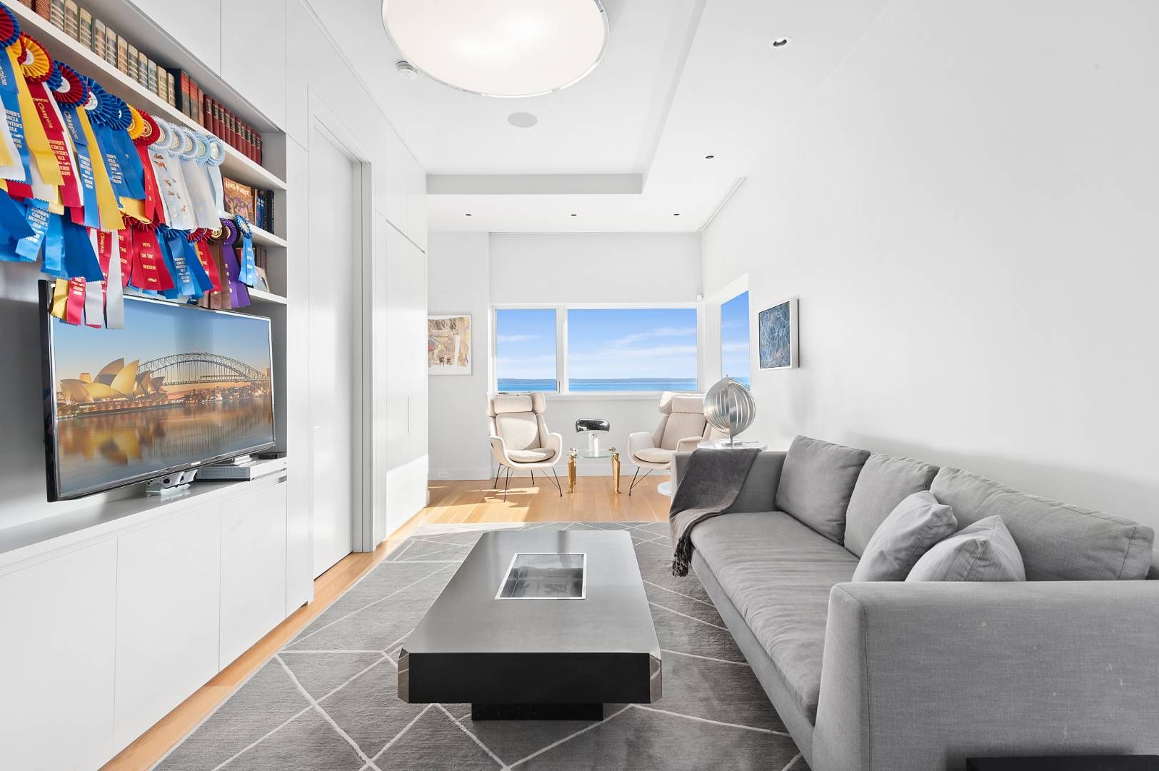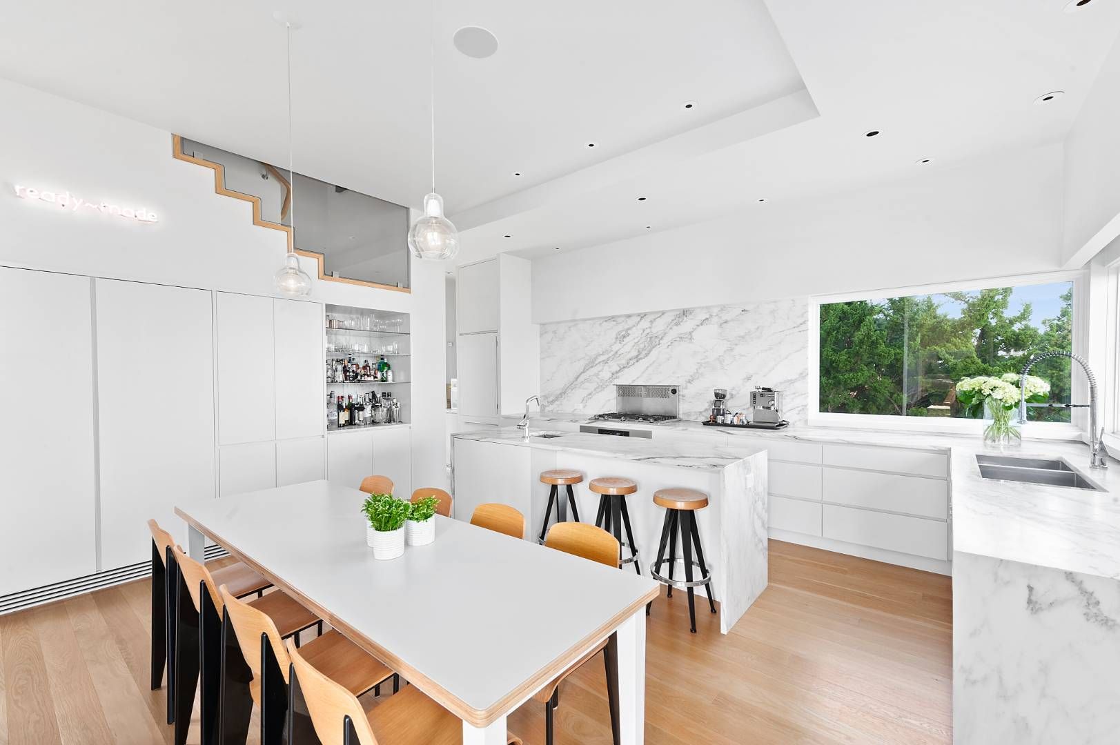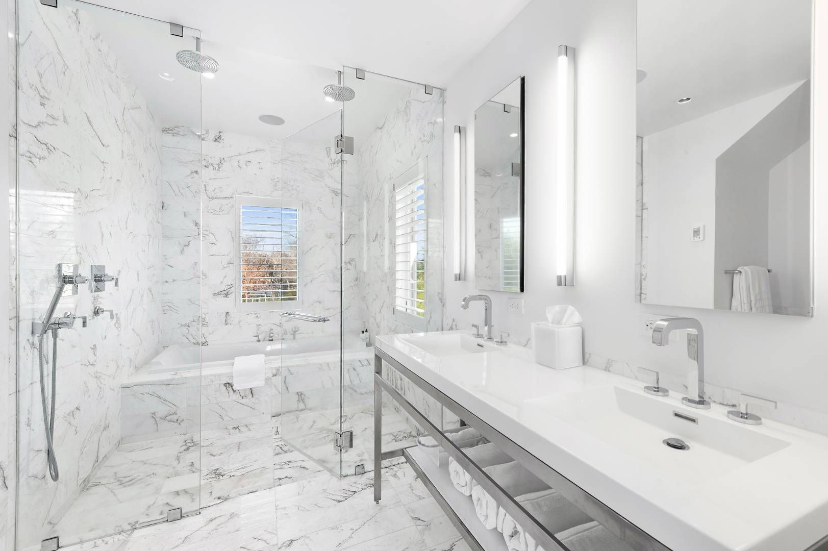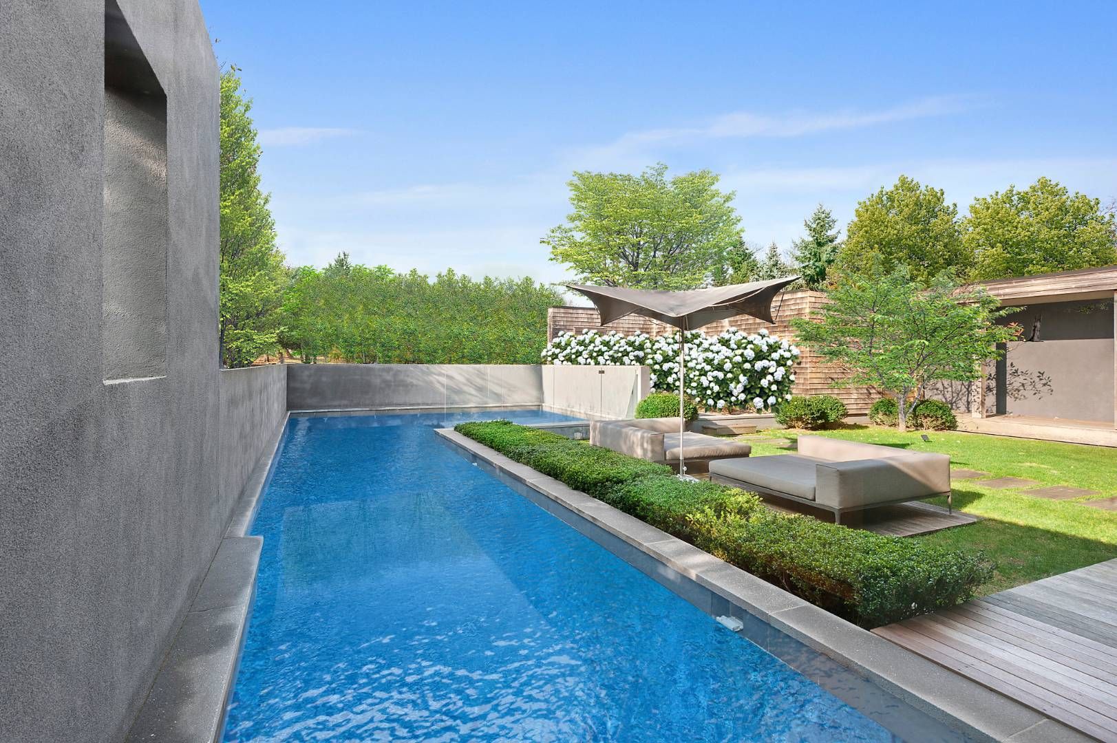Magnificent panoramic water views are yours in this sleek, sophisticated 6 bedroom, 5.5 bath North Haven contemporary, set amid lush landscaping by American landscape architect Ed Hollander and designed by Leroy Street Studio, repeatedly named by Architectural Digest to its "AD100" Top 100 Architects and Designers list. Walls of glass showcase water views to Sag Harbor Village and marina, with breathtaking sunsets and sunrises. Open living are