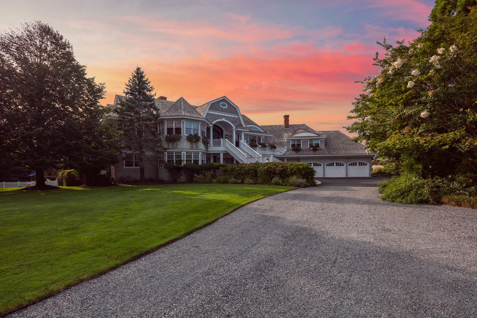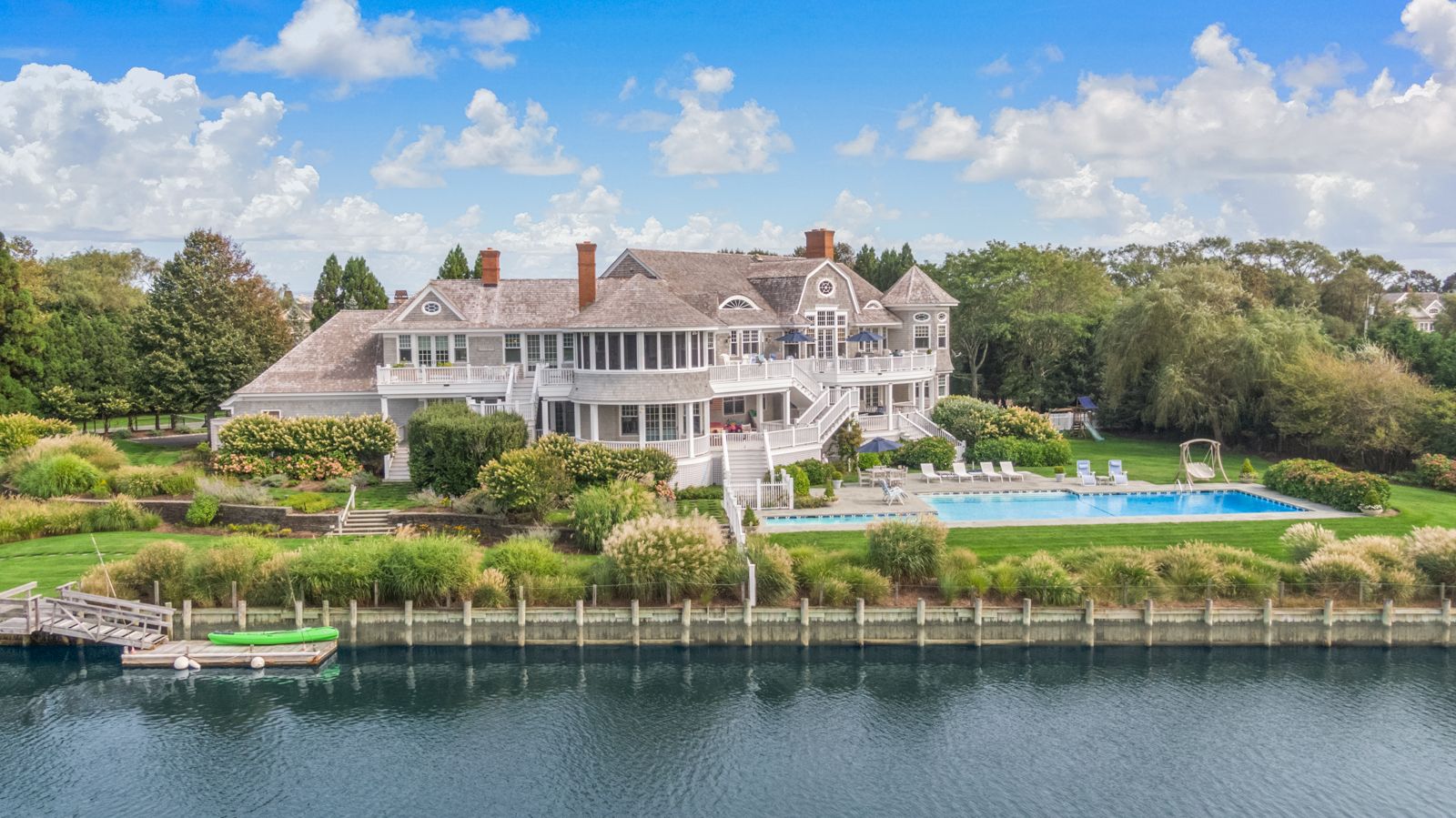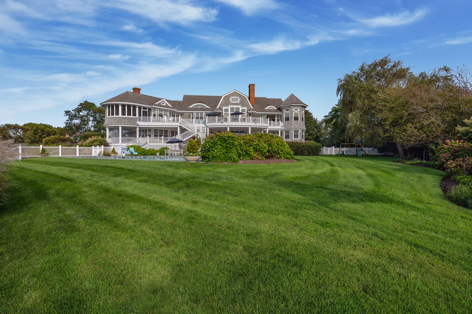 An impressive waterfront property with gated entrance; magnificent sunset views; deep water dock with boat slip; water-facing Gunite pool with separate extended lap lane; spa; sunken Har-Tru tennis; landscaping by Edmund Hollander; and a proper 9,000 -square-foot manor house—all built to exacting standards. Protected and s