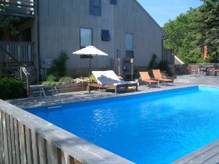 Lovely saltbox contemporary, 4 bedrooms 2 baths with winter water views of Montauk's Fort Pond Bay. Open livingroom with brick fireplace and decking on both levels. Finished basement and newly installed inground heated pool with decking on 3/4 acre parcel.