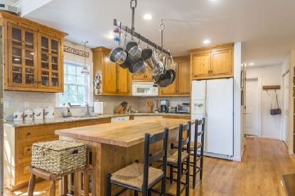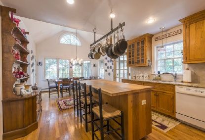 Tucked on a hill and hidden from view, this immaculate traditional on 1.19 +/- acres overlooking Fresh Pond has a sense of seclusion and tranquility, with prevailing southwest breezes and sunsets as a welcome backdrop. Well thought-out in every way, with double-height ceilings and fireplace in the living room, an efficient kitchen with dining area overlooking the water. The first floor also offers a master bedroom with spa-like bath. The secon