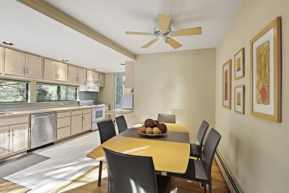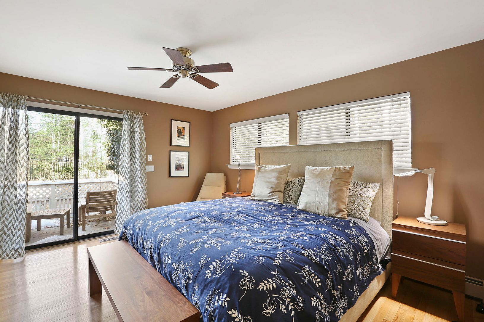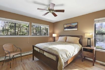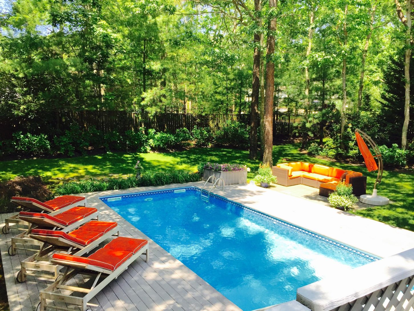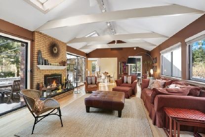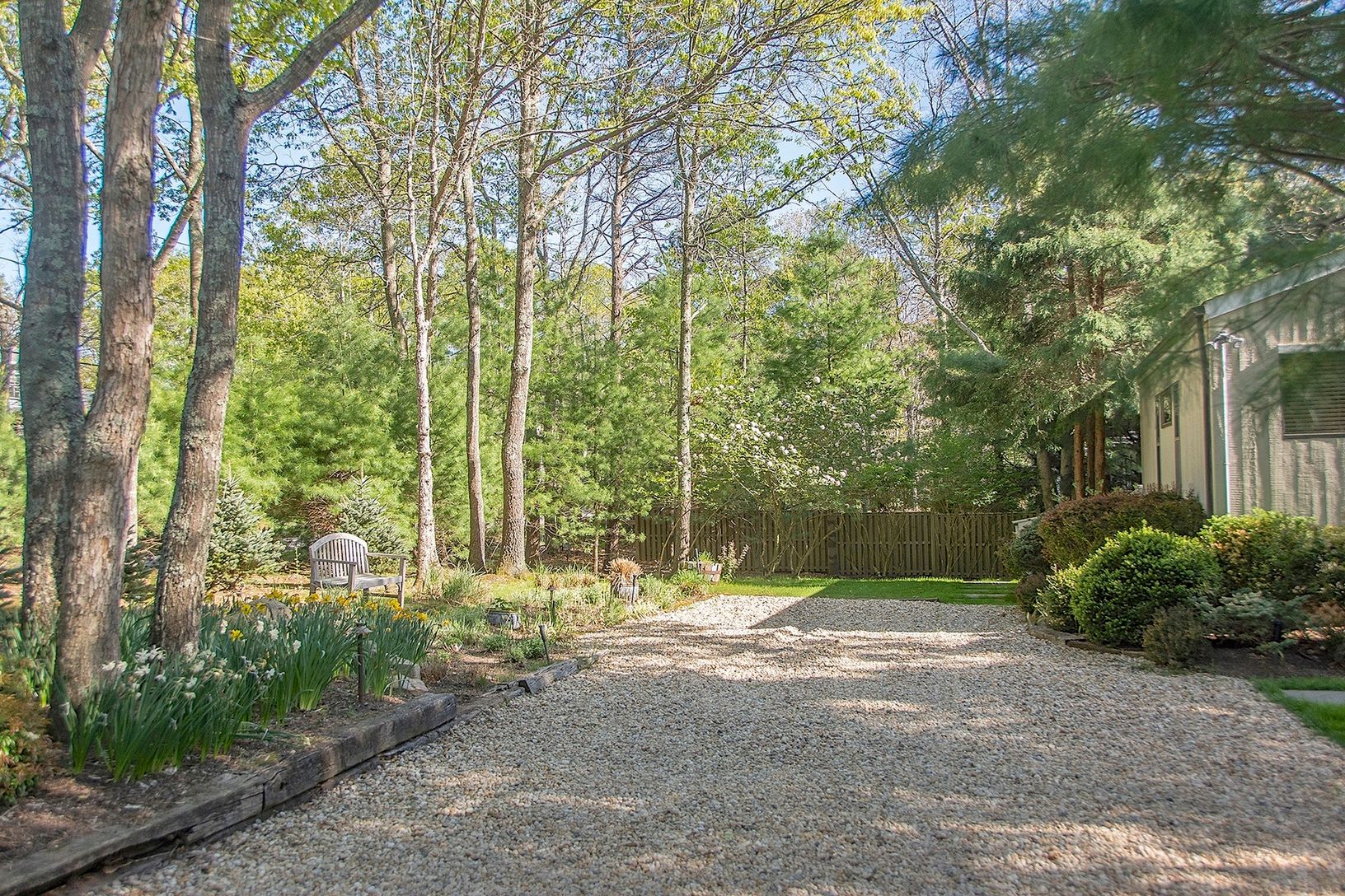 On just under a half acre, tucked away on a quiet street in the Northwest Woods, this three bedroom contemporary Hamptons home is bright, hip, and perfect for entertaining. The sun-drenched open concept living room features a wood burning fireplace, large windows and skylights providing ample light. Sliders lead out to the rear deck, heated pool and beautiful grounds. The master bedroom suite is private and features a modern bathroom and acce
