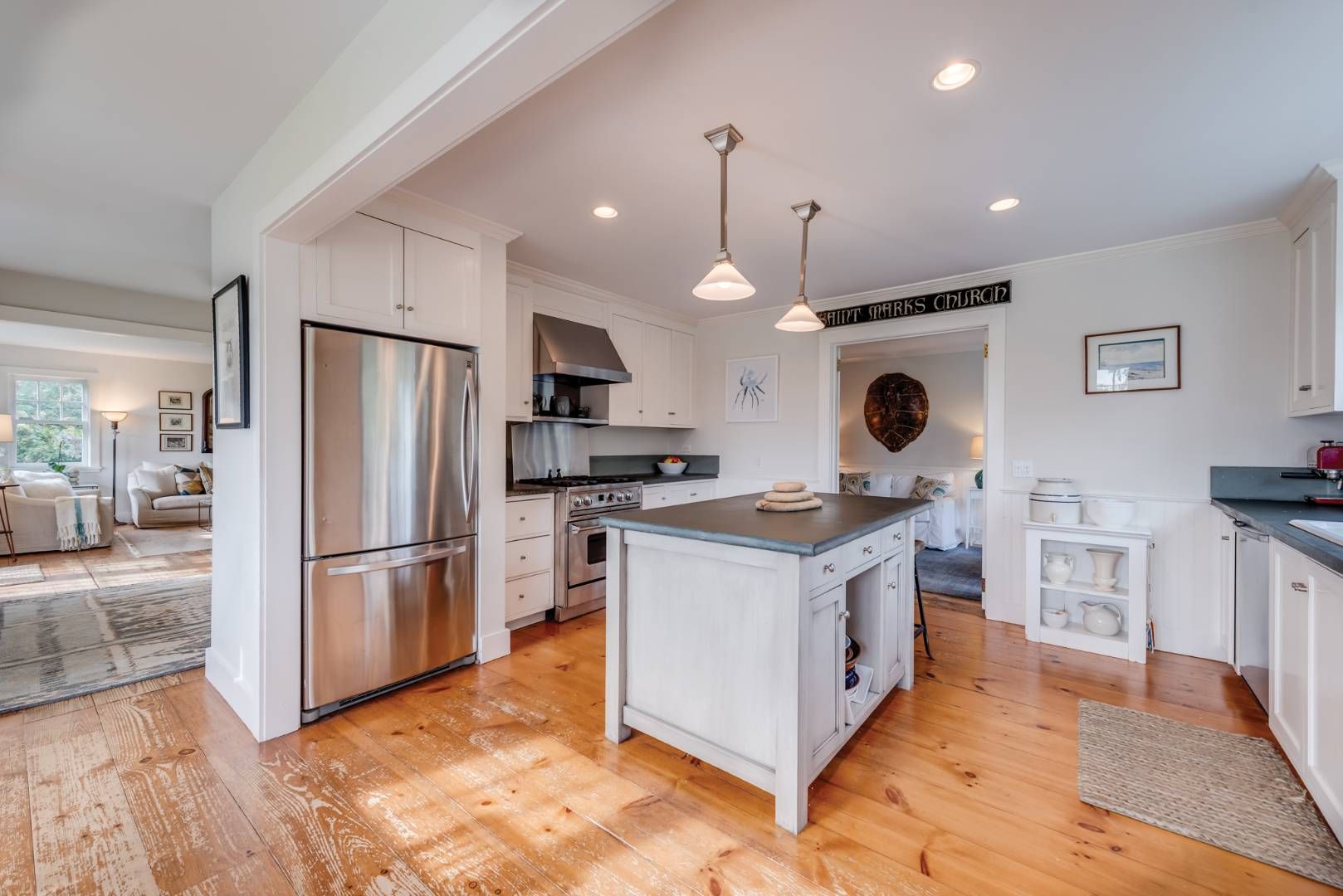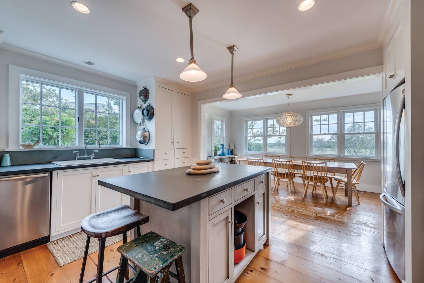 From the moment you enter this lovingly built Montauk retreat, you are home. With forever views that sweep across the protected farm pastures of Deep Hollow Ranch to the Atlantic Ocean, this home's serene beauty is unparalleled. The breathtaking Montauk landscape blends seamlessly with the home, its poetic vistas framed by the thoughtfully placed windows and French doors. The open, sun drenched country-style kitchen, large dining area, and l