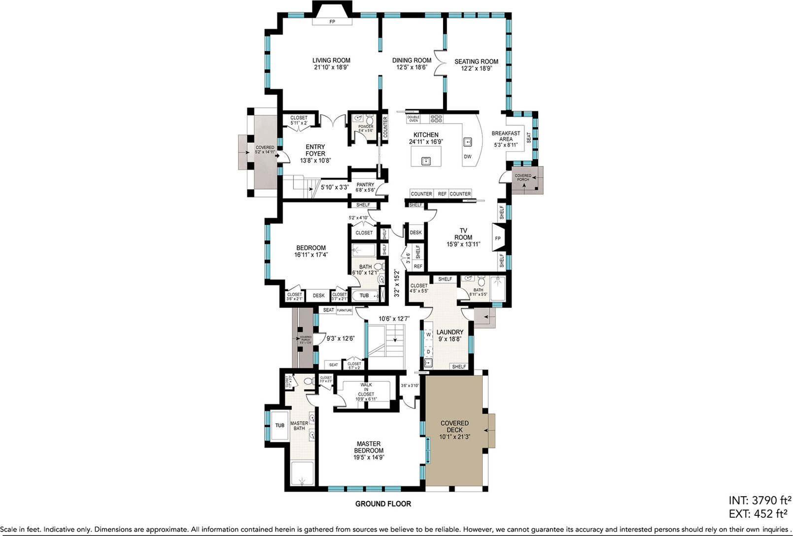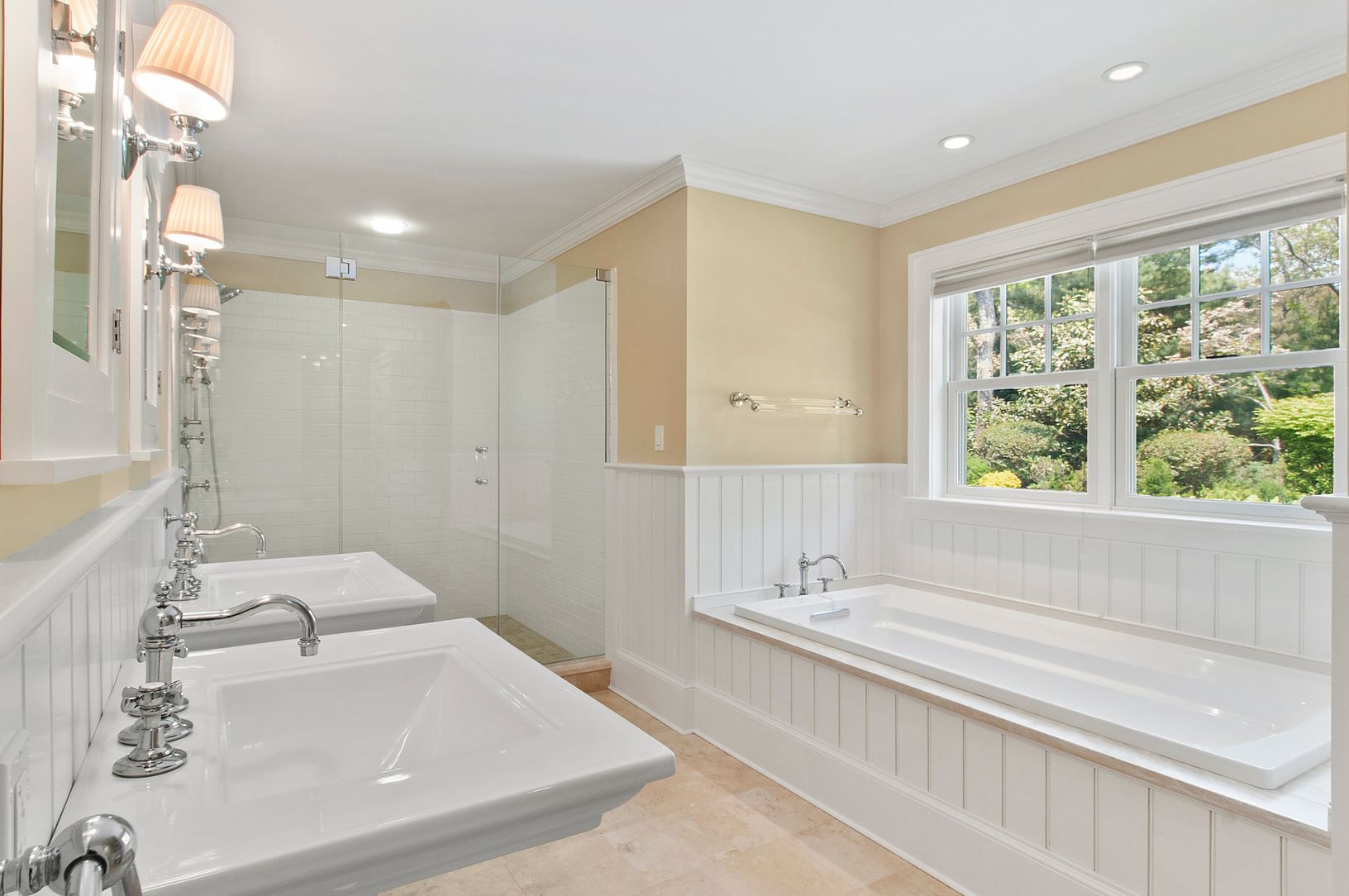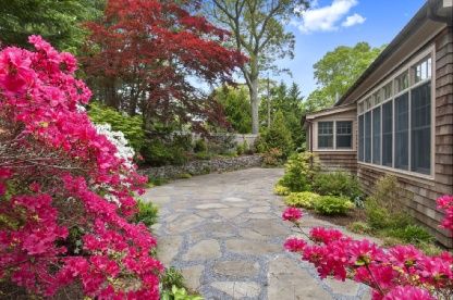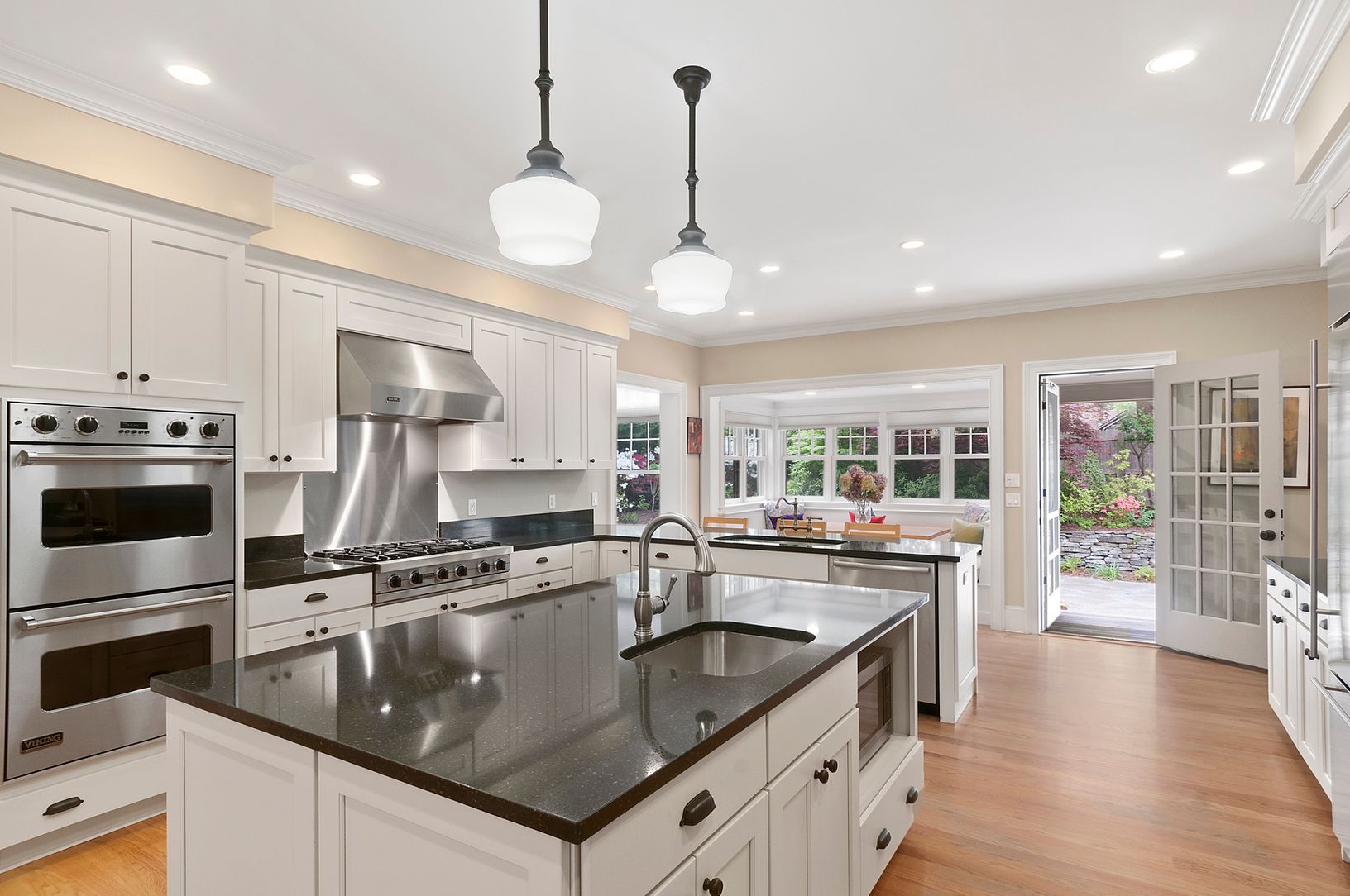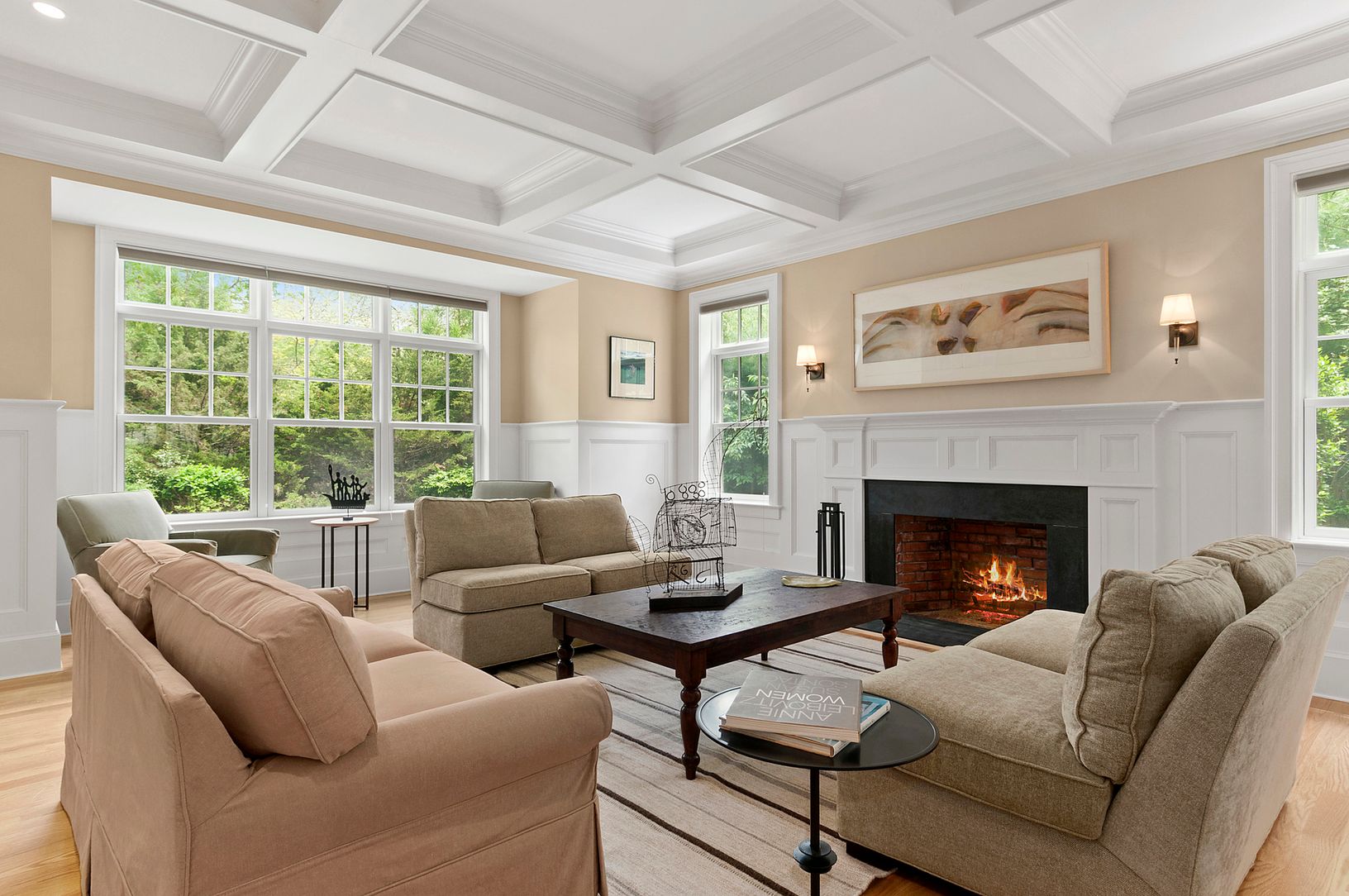 First time offered. Special turn key thoughtfully designed and built home on .85 +/- acre. Entering into the front door to your left is a formal living room with coffered ceiling and fireplace and plenty of light. The living room flows seamlessly through French doors into the dining room where you can seat 10 or more of your closest guests. Next to this is a sun drenched room overlooking the garden and patio area with lots of privacy and flow