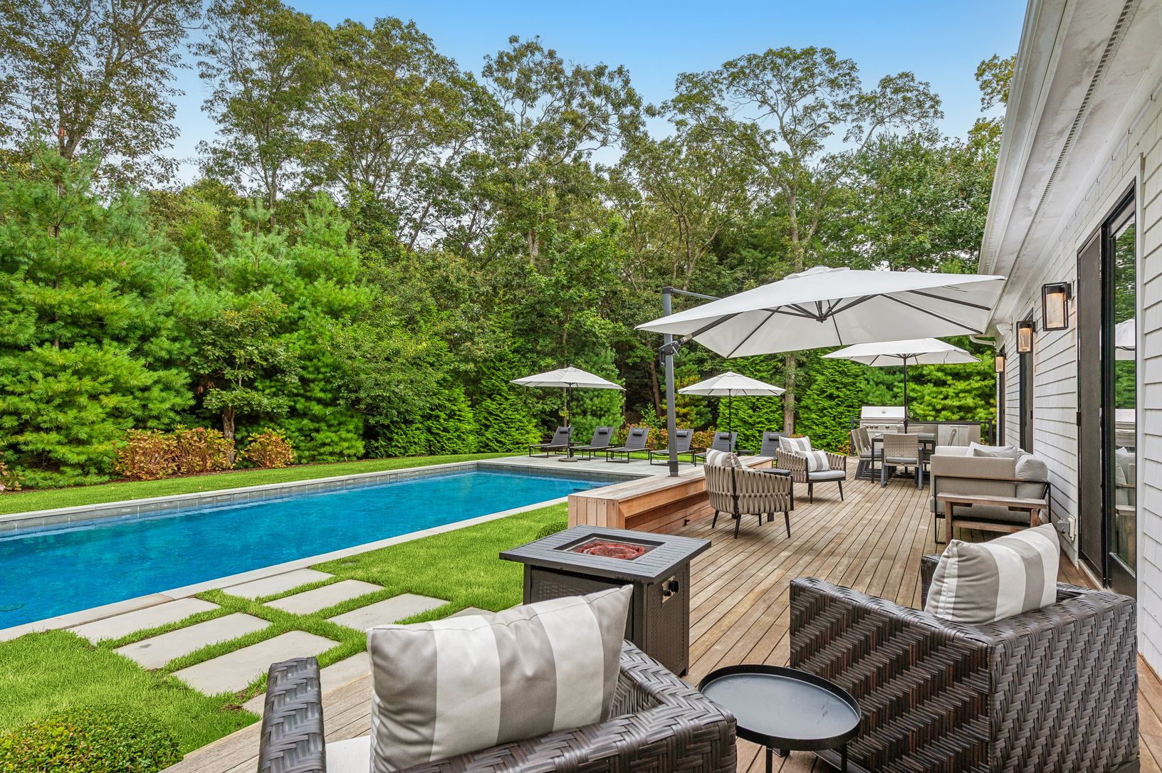 Experience the ultimate East Hampton getaway in this nearly new luxury home tucked away in a serene Northwest neighborhood—just minutes from Three Mile Harbor and Sammy’s Beach. Designed for modern Hamptons living, this stylish retreat blends bright, open spaces with top-tier amenities inside and out.