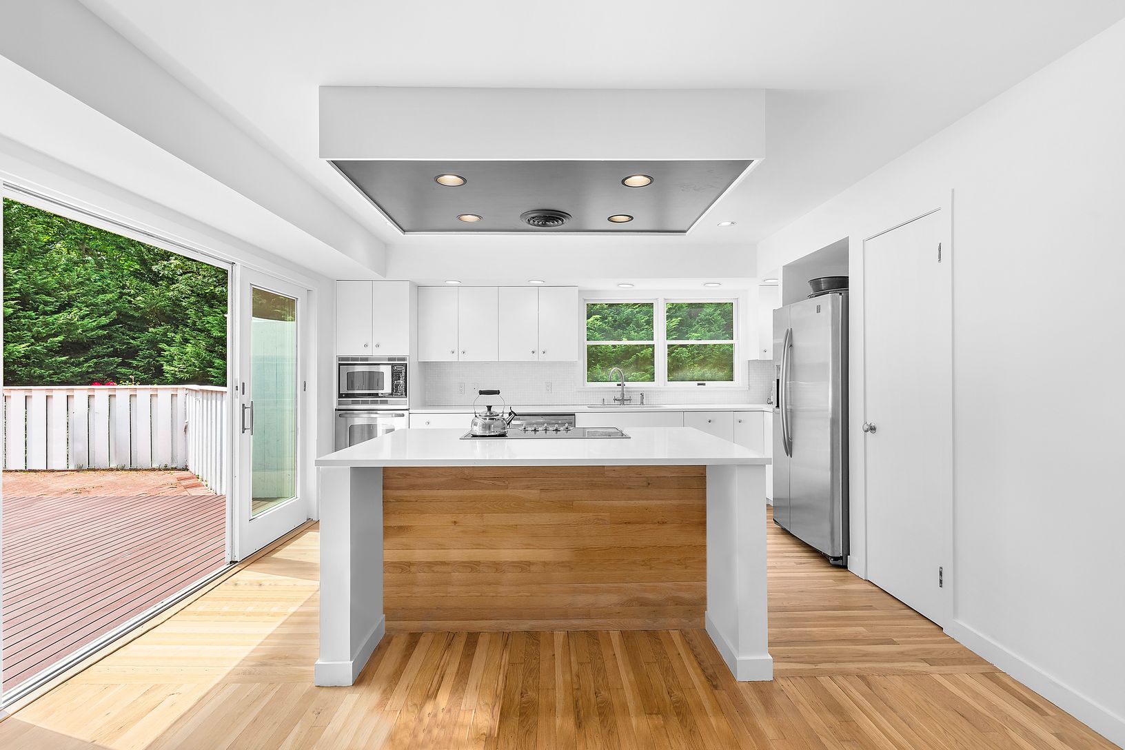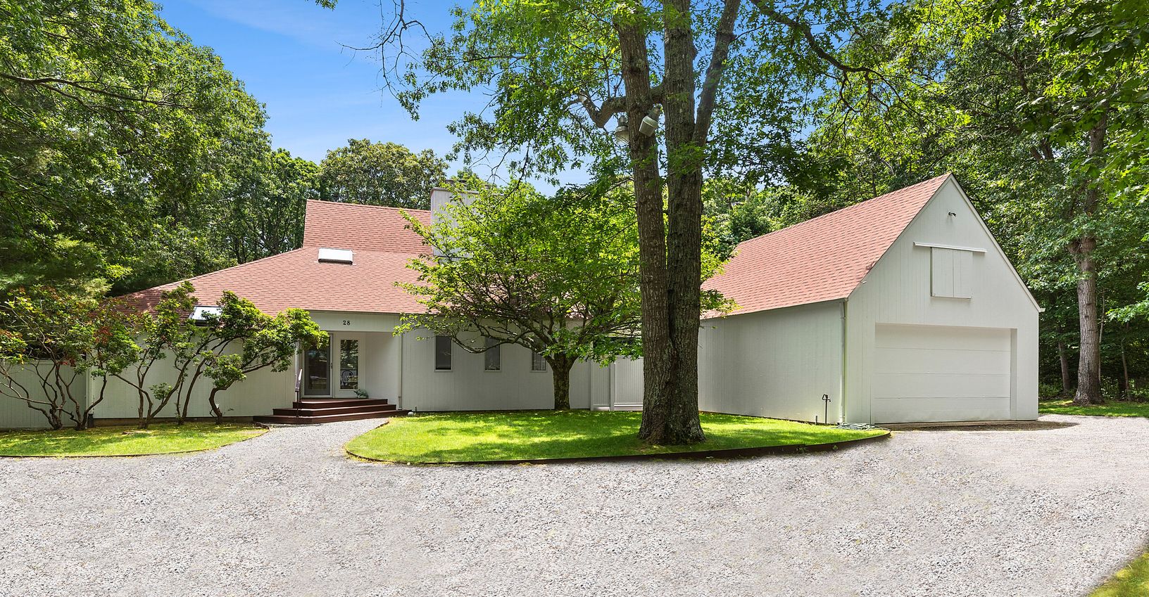 Perfectly situated between Amagansett and East Hampton Villages, nestled into a serene cul-de-sac neighborhood, sits a spacious 4bd 2ba modern barn style home on .88 southern-facing acres surrounded by mature landscaping. The 2400 sq ft open-concept main home includes an oversized living room with fireplace and patio access plus an eat-in kitchen with access to a screened dining porch, perfect for al fresco entertaining. Vaulted ceilings, expo