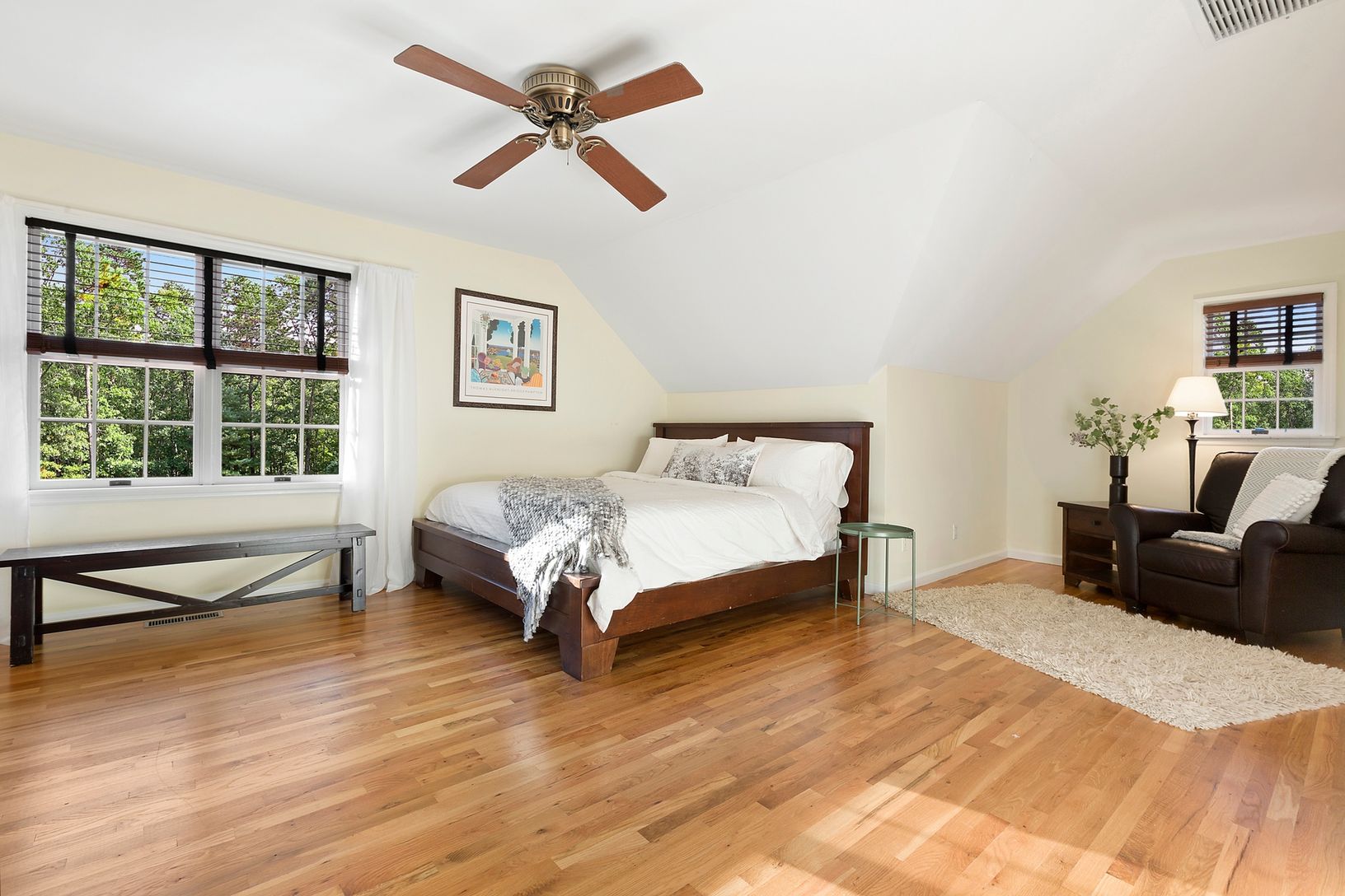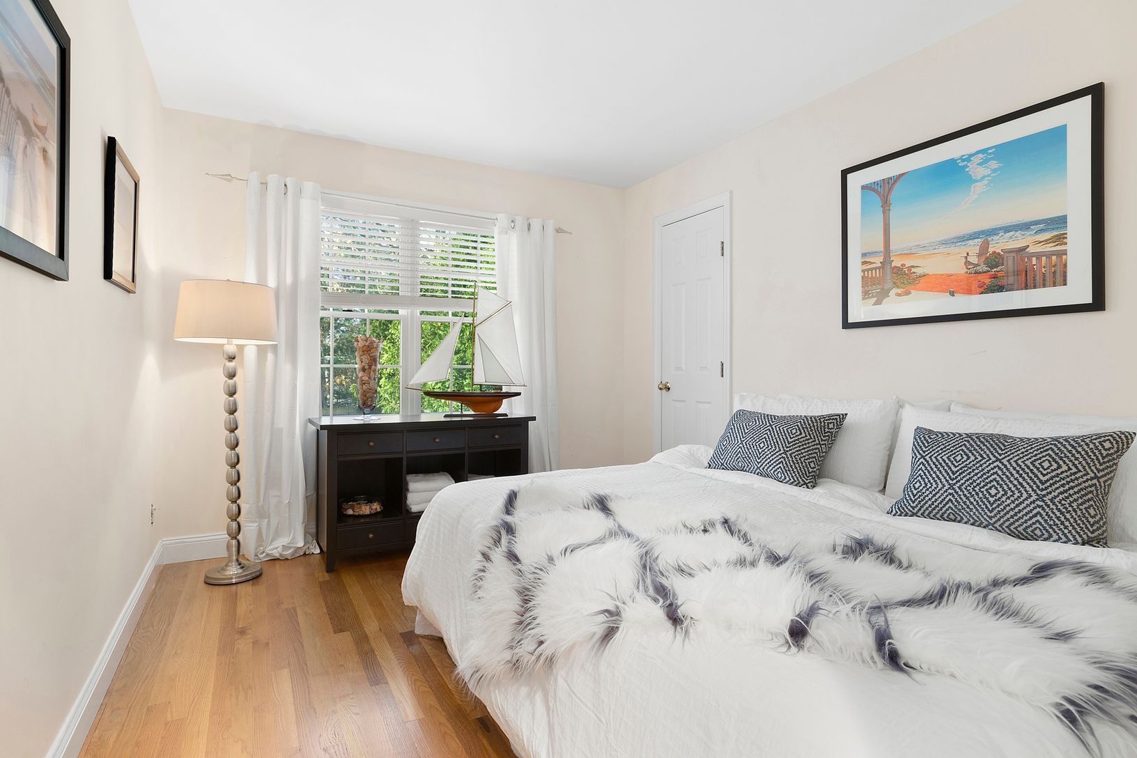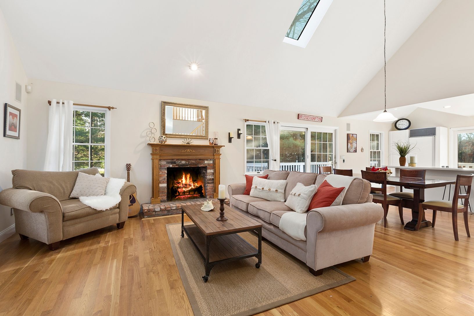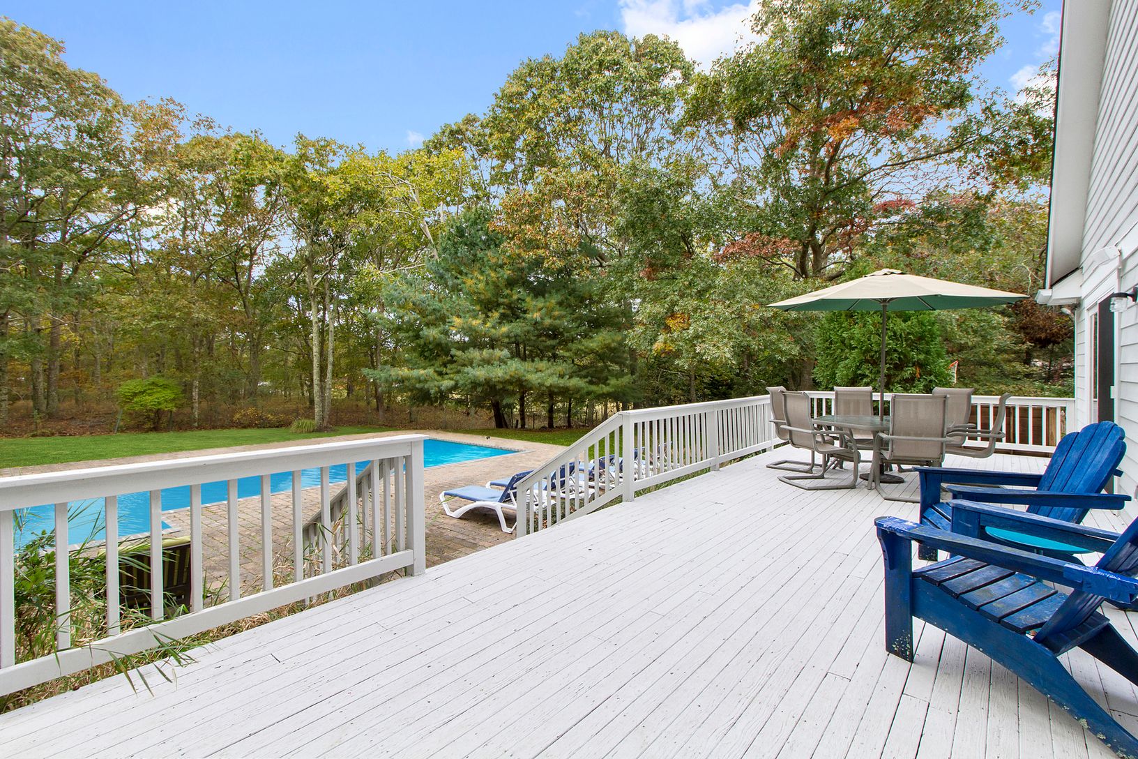 This Post Modern 2,200sq ft home is located minutes to Bridgehampton Town in a community called Bridgewoods. Featuring open kitchen, dining and living floor plan with wood burning fireplace. Totaling Four Bedrooms, with ensuite master on first floor along with Bedroom and a Den with french doors. Partially finished lower level with separate walk-out. The exterior of the house features heated pool surrounded by brick patio. New large cedar deck