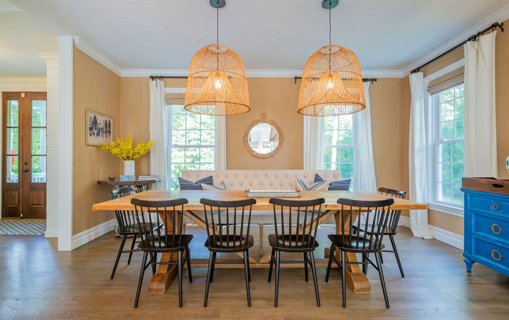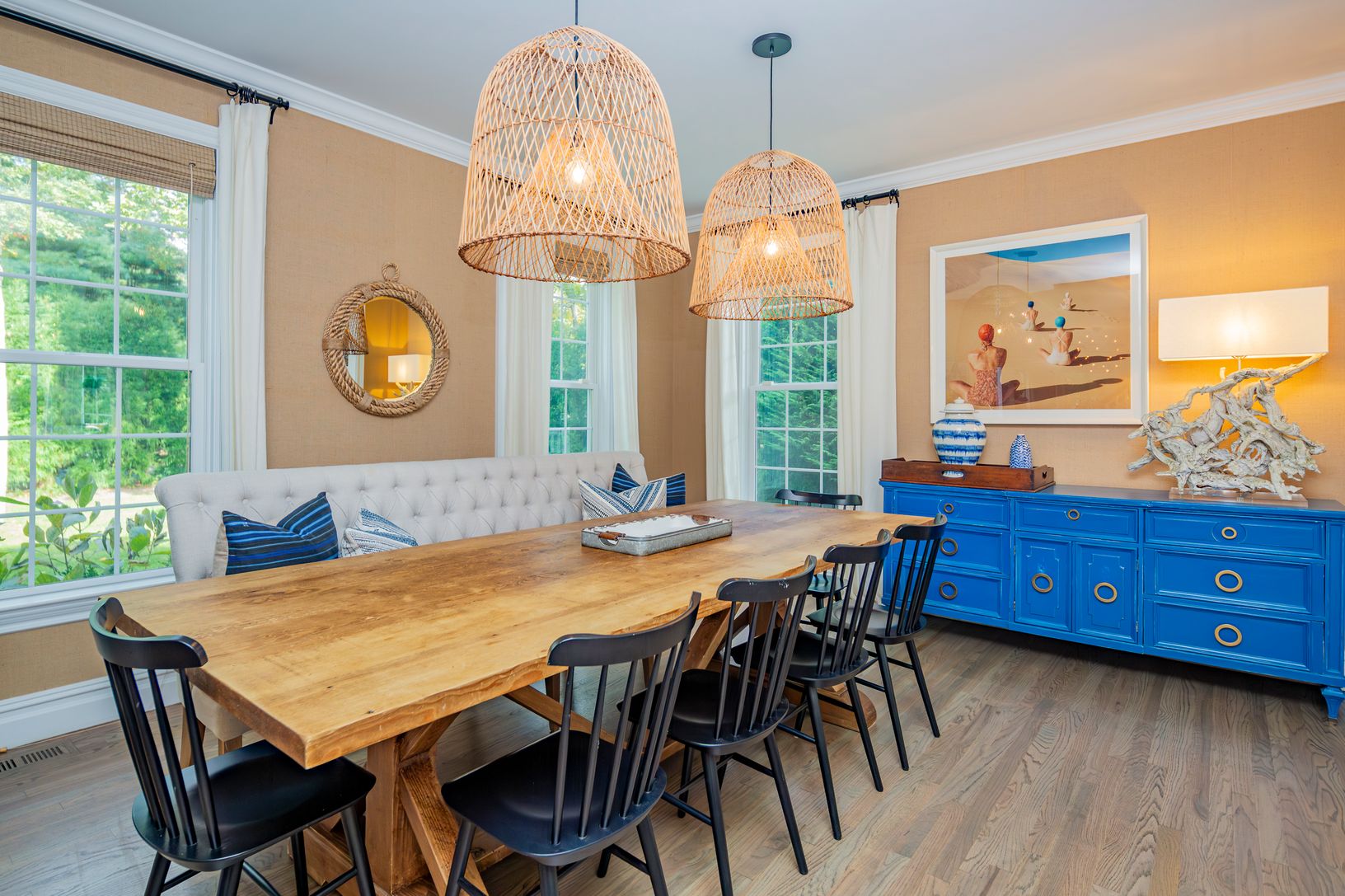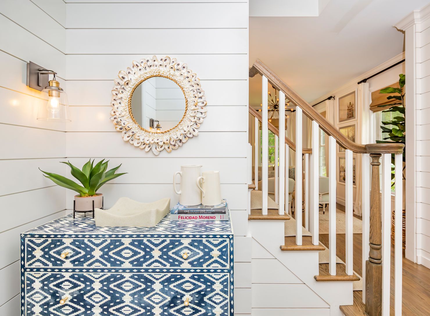 Unveiling a luxurious home between the villages of East Hampton and Amagansett, where impeccable design and attention to detail come together to create an extraordinary living experience. Crafted by interior designer Jennifer Dyer, this stunning renovation is located about a mile from the ocean and exudes a wonderful combination of classic refinement and beachy chic. The first floor features a bright foyer that leads in all directions. To the