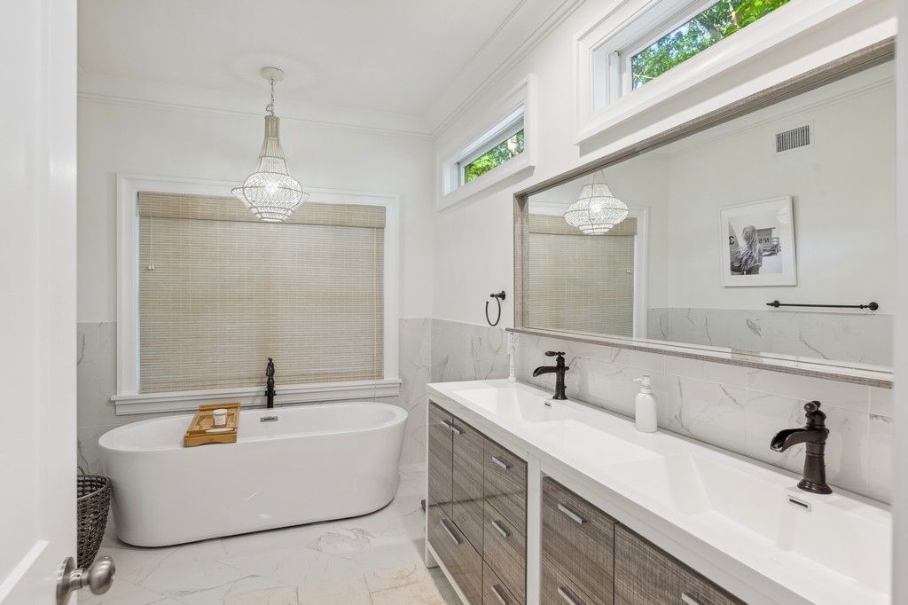 Come enjoy this beautiful Southampton summer home! Fully Renovated and Designer Decorated! There is plenty of room to entertain or escape with over 6000 sq ft of interior living space on 3 floors. This home is set on an acre of private landscaped property at the end of a private lane. Perfect to enjoy the peace and serenity you deserve! There is an amazing 1st floor primary bedroom, 2nd story guest suite, 2 additional bedrooms and office bonus