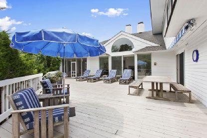 Fabulous five bedroom 4.5 bath home tucked away on over an acre in the Hamlet of Remsenburg. Endless entertaining spaces throughout include a gourmet, light filled kitchen hosting a wolf range and private breakfast nook, dining area with adjacent screened in porch/sun room, plus a lavish living room with white brick fireplace. The master suite with privacy deck to view the creek and pool which is all surrounded by multiple decking to be enjoye