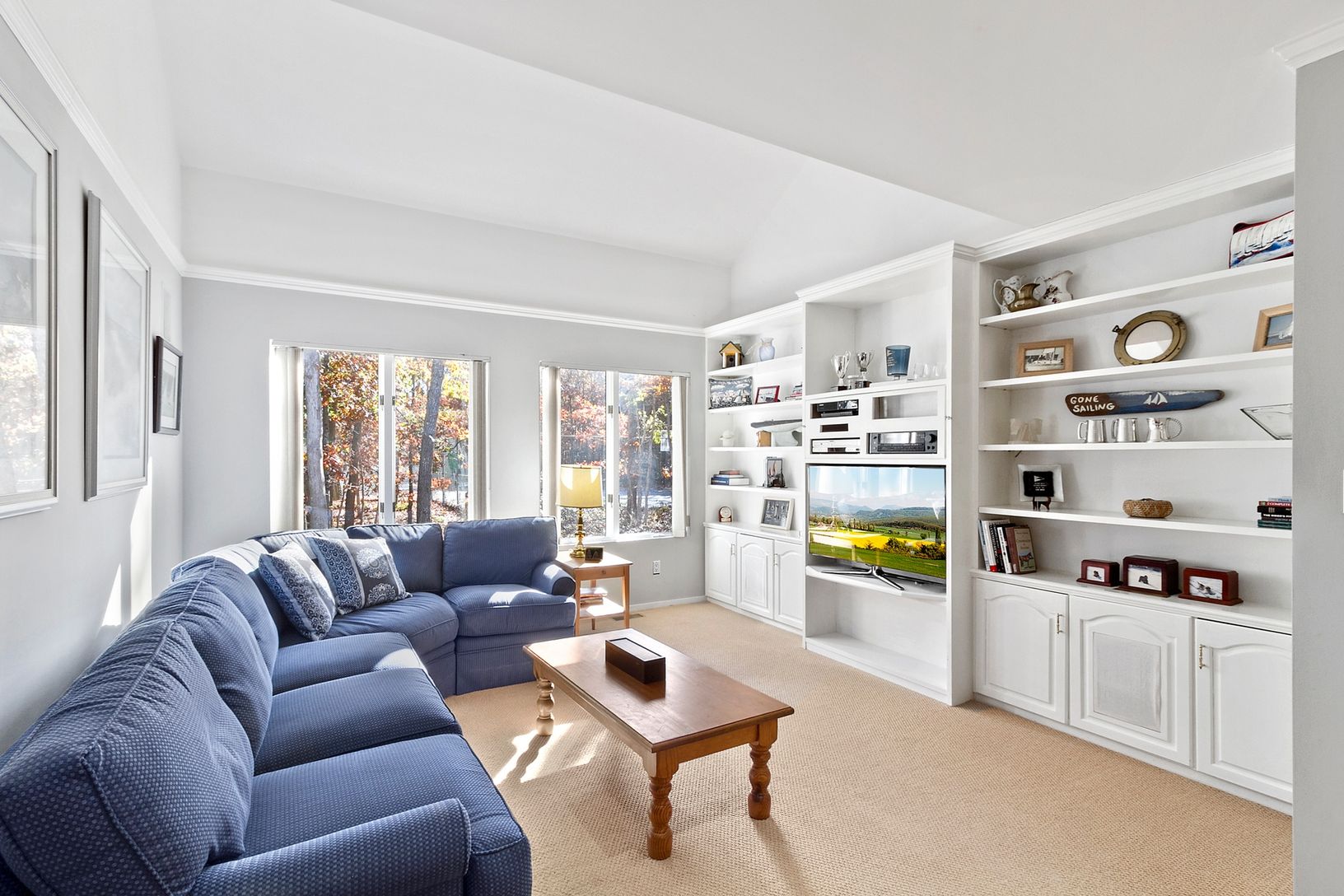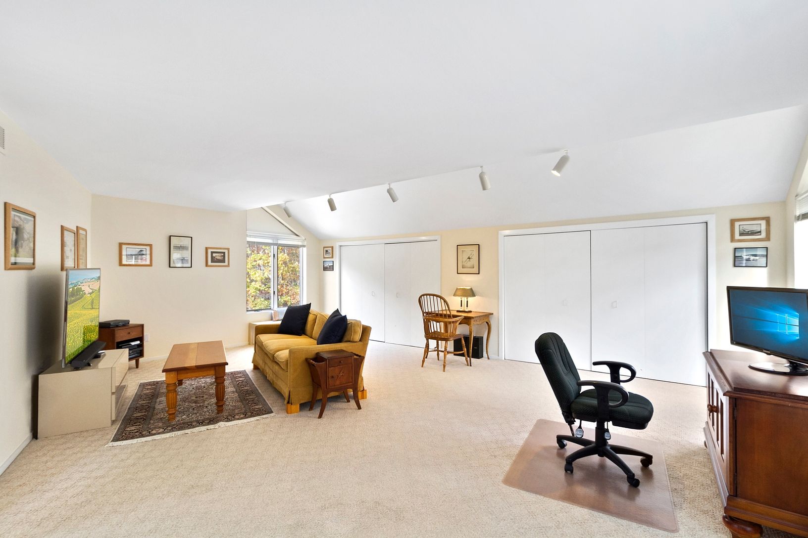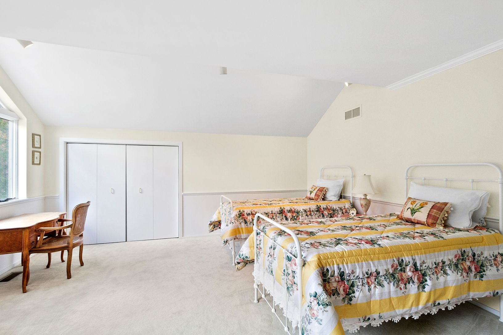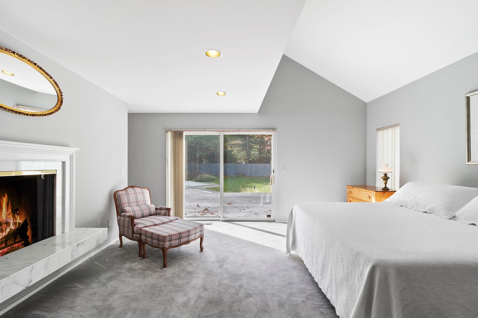 Tucked away on a secluded cul-de-sac in North Quogue stands this nearly 4800 sf contemporary home. Extensively renovated, this home has 5 bedrooms & 4 & 1/2 full baths. Upon entering, you'll notice the open floor plan with unimpeded views of the back yard, vaulted ceilings, and an abundance of ambient light. The living room with fireplace flows seamlessly into the formal dining area and kitchen with high-end appliances, granite counter