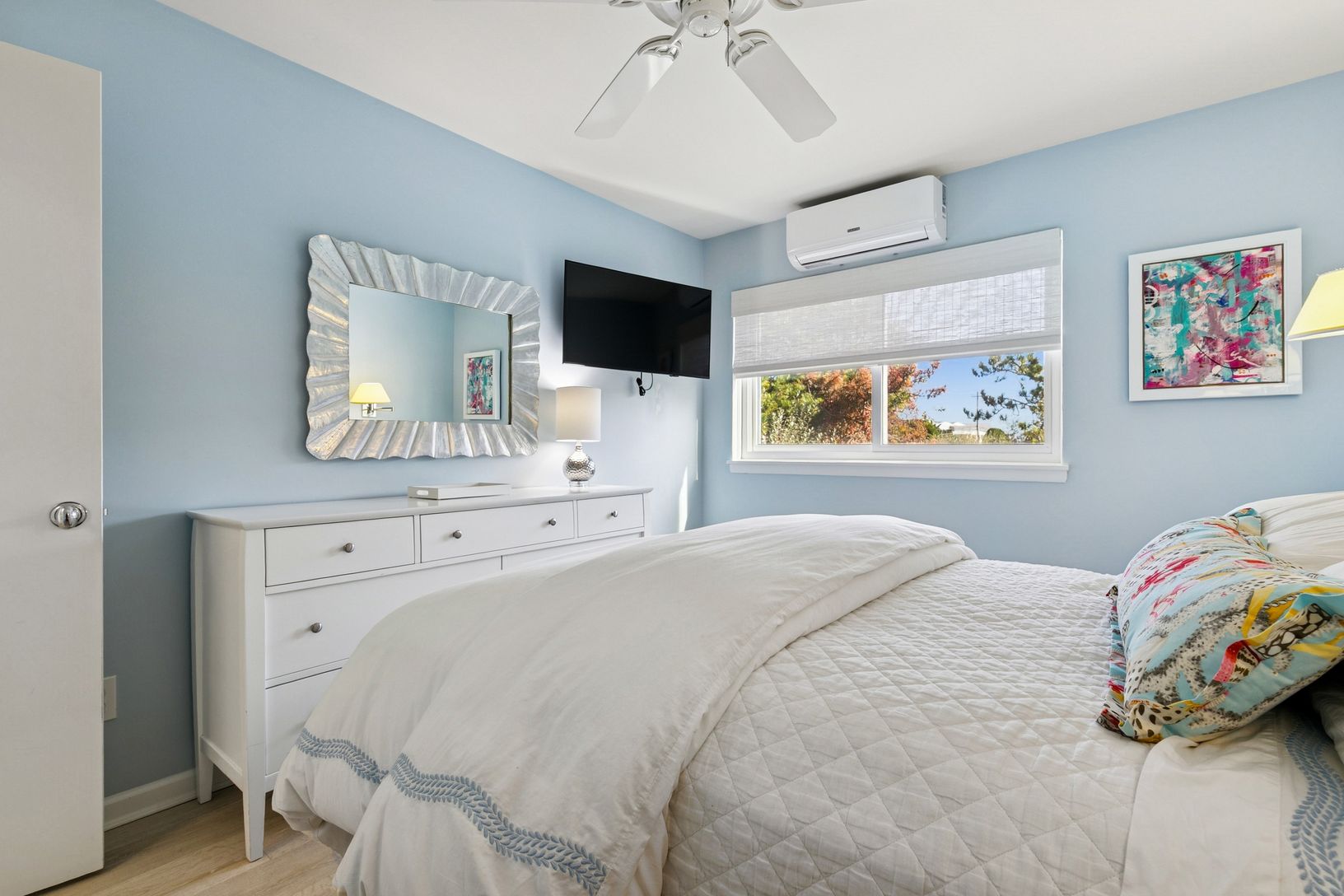 Enjoy the Ocean breezes and full amenities of this chic and cheerful one bedroom Dune Road apartment. The charming bright and happy summer getaway hosts all of the amenities you have come to expect in an oceanfront co-op. A well-equipped kitchen, sumptuous bed with crisp linens, and a large walk-in closet, Enjoy the seaside breezes on your private deck, take a dip in the sparkling pool, stroll along the sugar sand beach, relax, grill, enterta