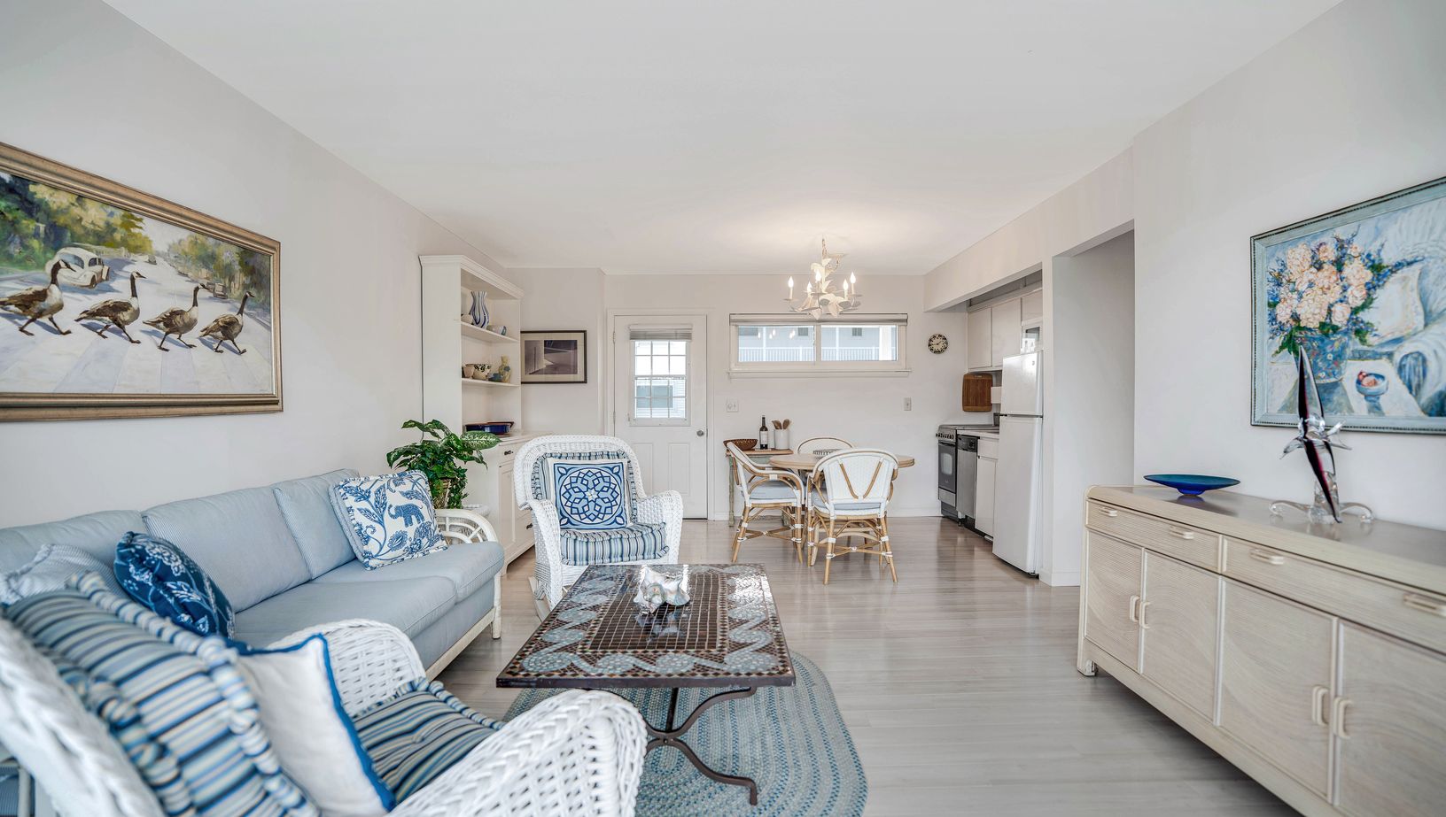 This oceanfront 1-bedroom, 1-bathroom co-op at La Coquille in Westhampton Beach offers The Hamptons lifestyle at the right price. Enjoy the beach view from your private deck, which has plenty of room to barbeque, dine outside and relax. The open kitchen and bright, airy living room lead to the deck through sliding glass doors, placing the beach and ocean directly at your fingertips. This full-service Concierge co-op offers private Residents On