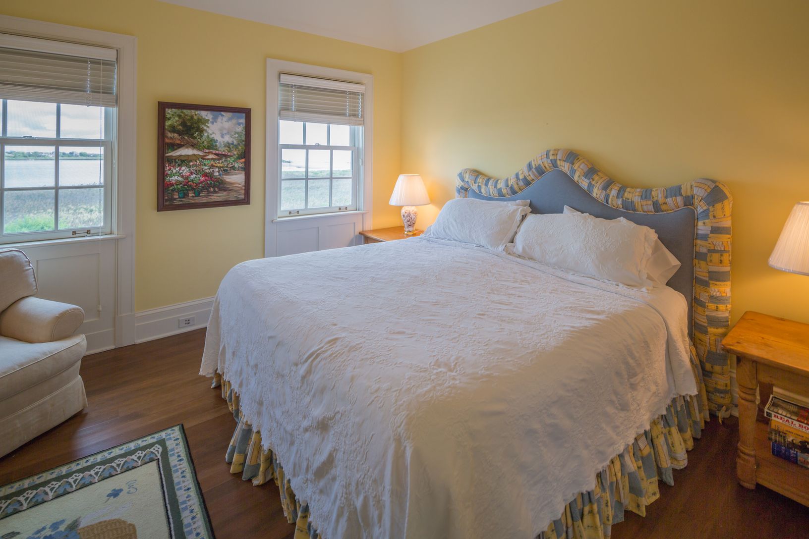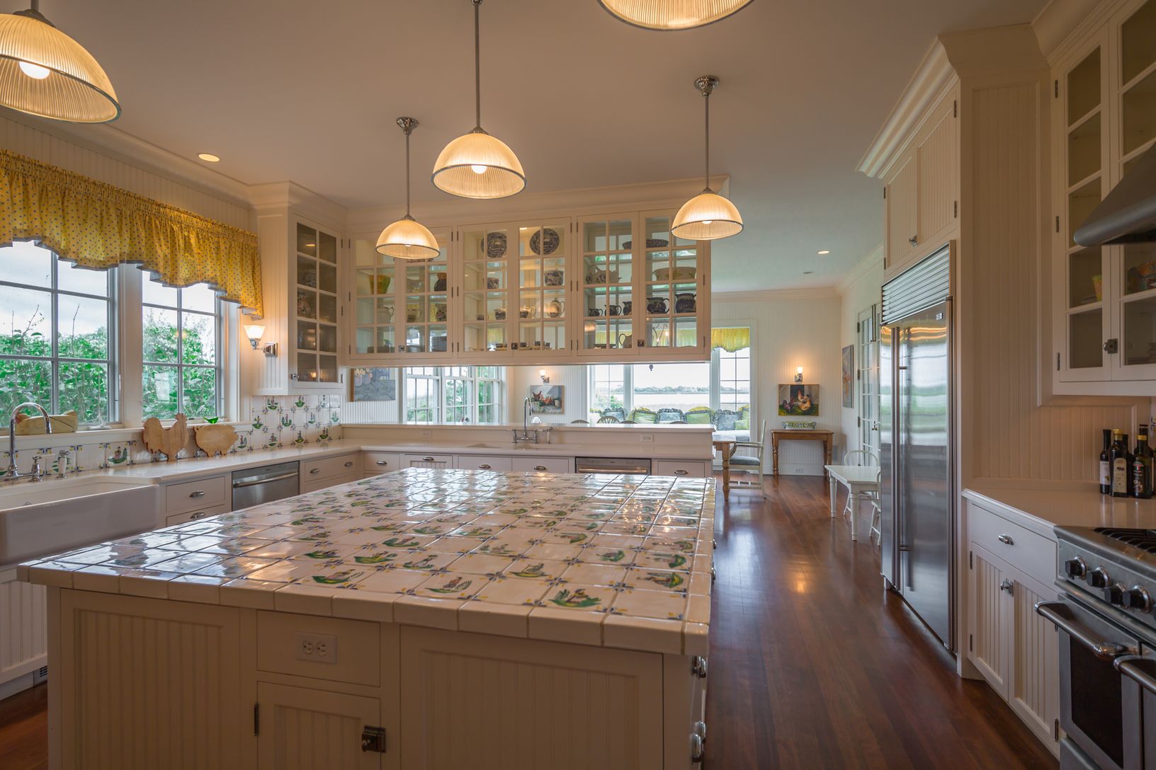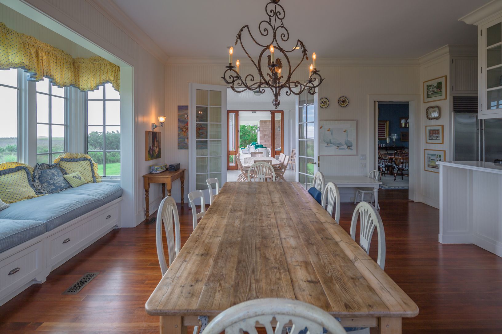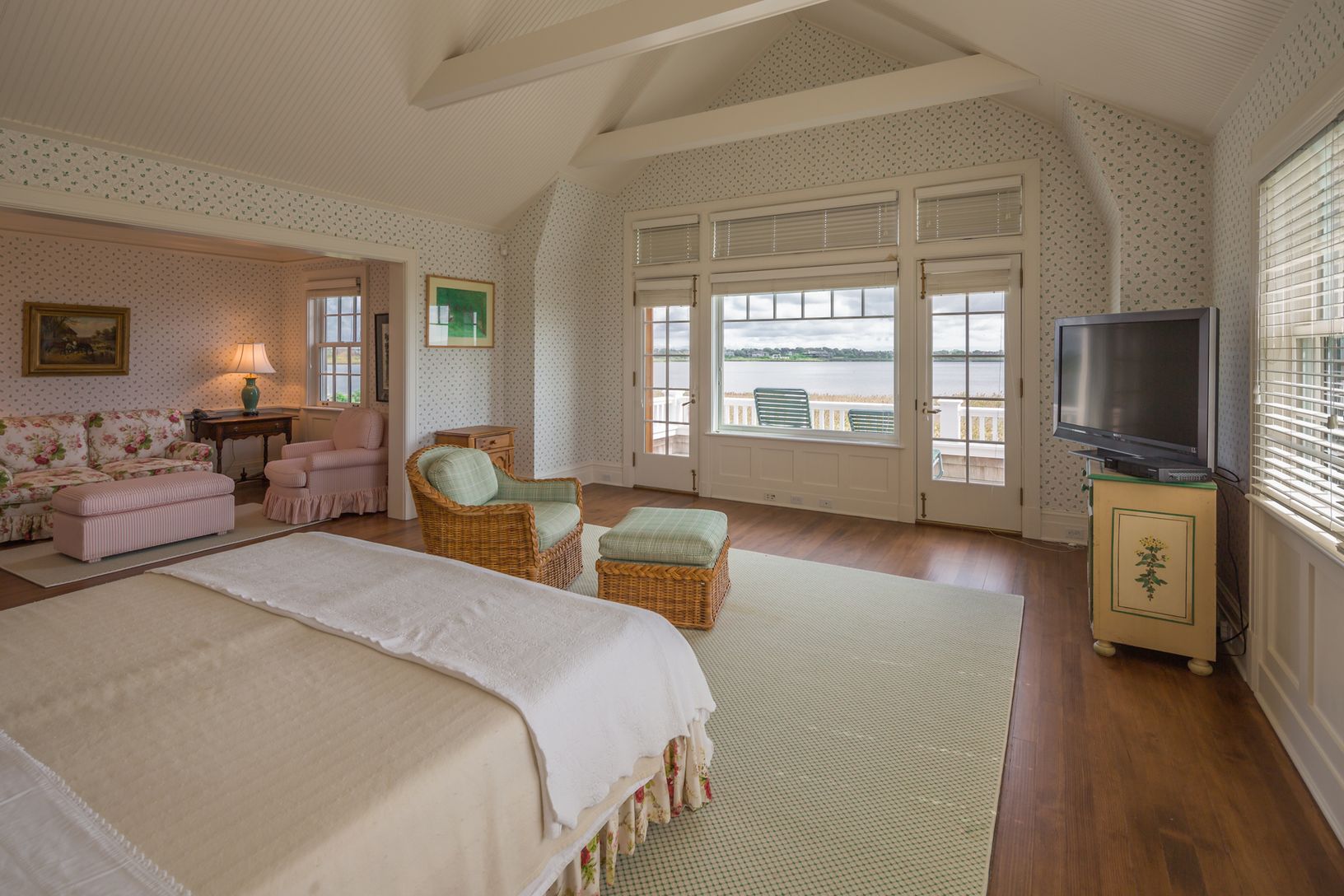 This beautifully appointed shingle style house is sited on a vast lawn with frontage on Sagg Pond right across from a footpath to the ocean beach for neighbors in this private Bridgehampton enclave. A gracious entry leads into a large living room with water views. The expansive country kitchen opens up to a screened porch and veranda overlooking the pond. In addition, there is a formal dining room and comfortable family room. There is plent