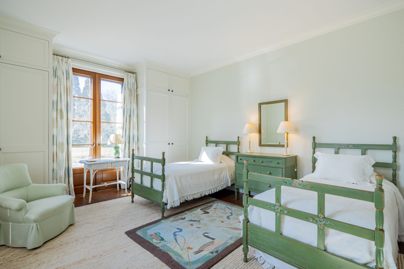 Spend any 2 weeks in this spacious 6 bedroom designer built house on 1.35 acres with large backyard, heated pool, spa and beautifully landscaped gardens. There are tall ceilings on both floors, flooding the house with light, and all first floor rooms have french doors opening out onto the back terrace for easy indoor/outdoor living. On the first floor is a large entry foyer, living room, dining room, kitchen and family room as well as a primar
