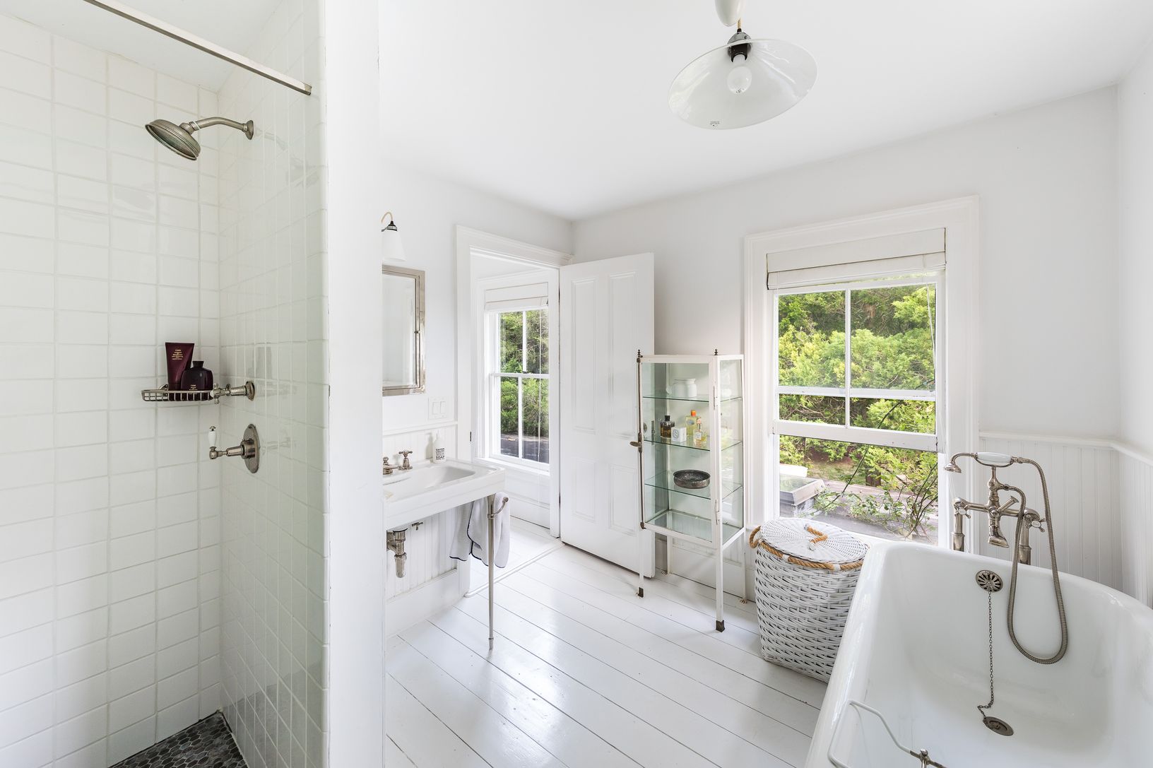 Seldom does a house like this come on to the market. This farmhouse has spacious living areas with wood burning fireplace that over looks the lovely gardens. There is a tv room off the living area and a full bath with laundry area on the first floor. Upstairs you will find three more bedrooms and two baths. There is an office area located on the third floor as well with views out to the lush gardens. The primary bedroom has views of the bay ac
