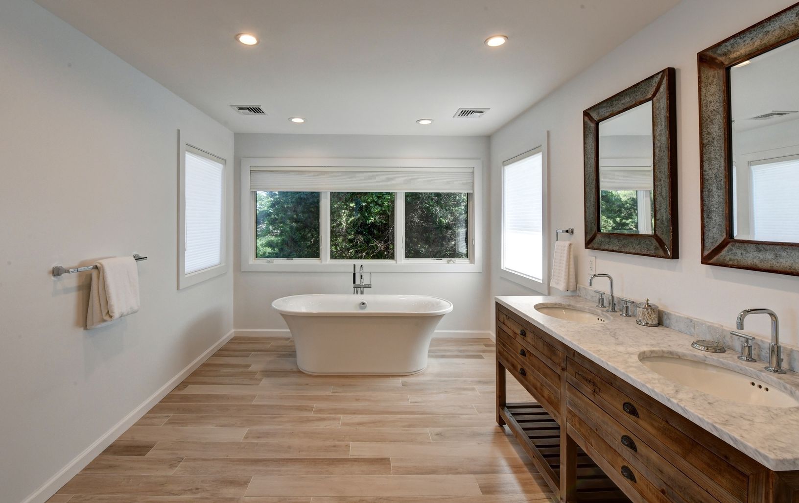 The Master bedroom has spectacular waterviews over Mecox Bay, new master bath with soaking tub and high end