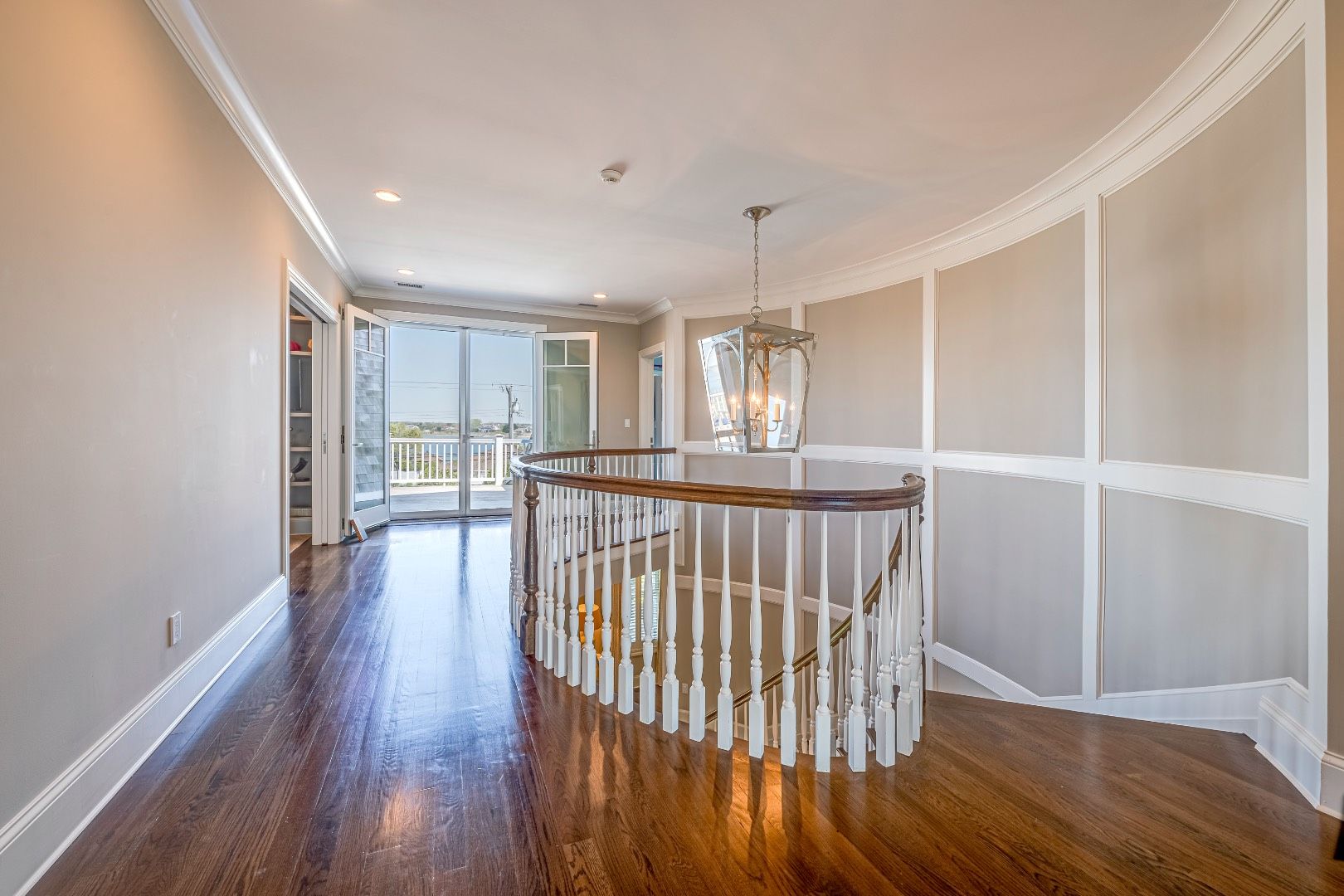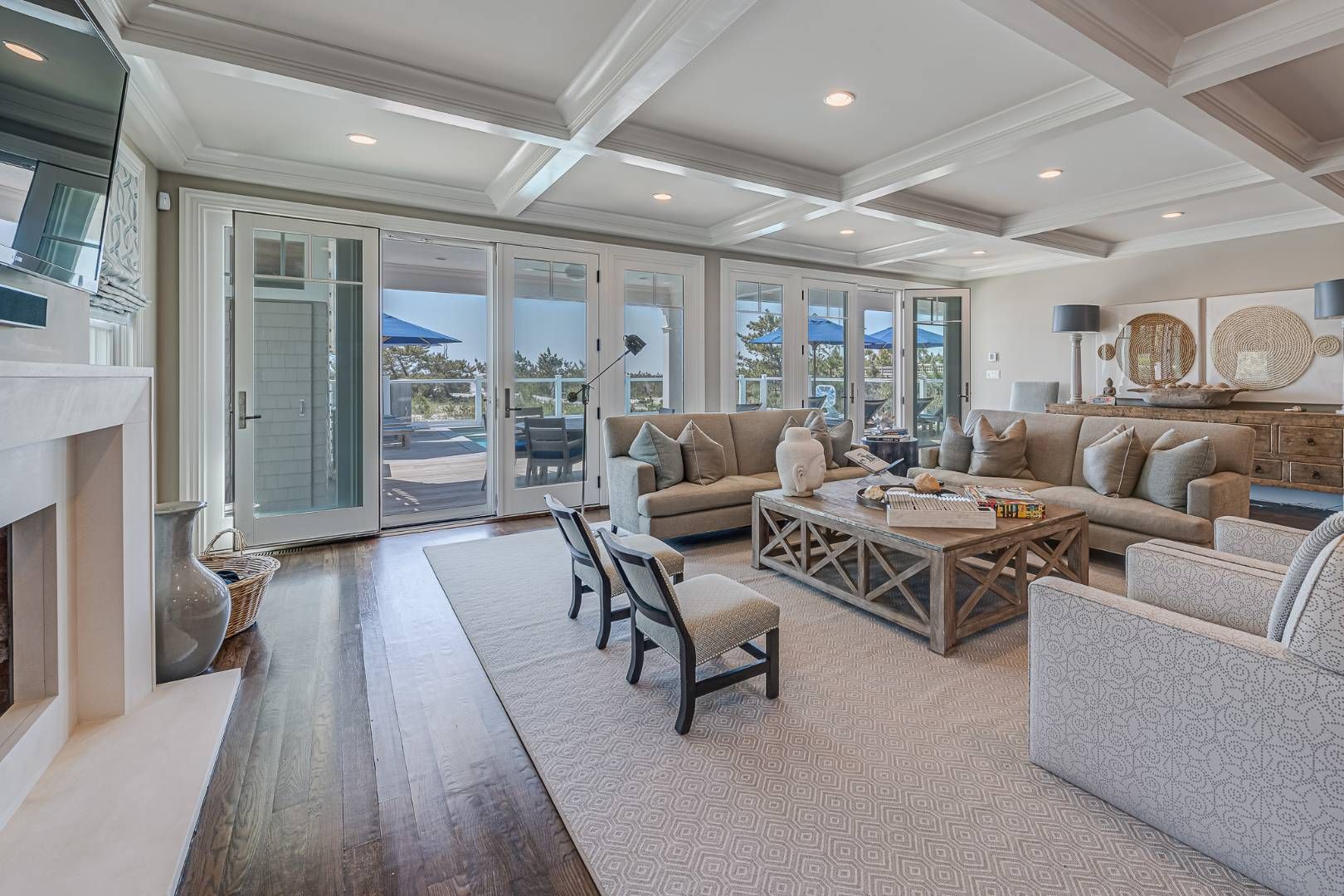 Situated on just shy of 100 feet of oceanfront, this captivating beauty presents sublime panoramic views of sea and sky, with a private walkway to the ocean. Custom built in 2013 with an award winning designer, 5,300+/- sq. ft. of bright, open living space is exquisitely finished and appointed. Enter from a classic front porch to a paneled foyer; off one side is a junior master suite with marble bath. Ahead find an expansive oceanside family r