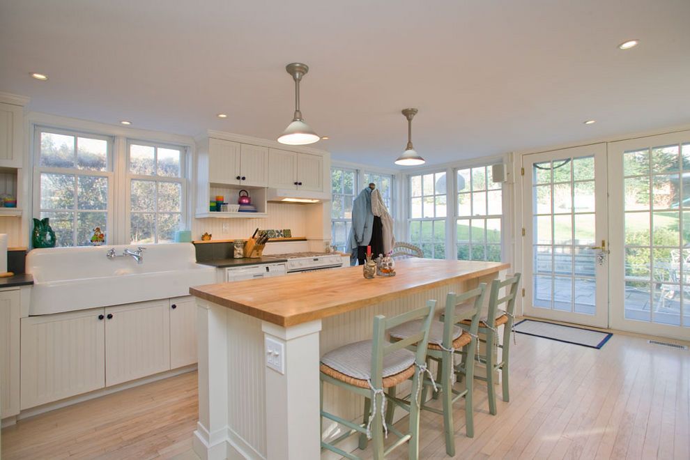 Sag Harbor, New York. 1890's fully renovated with new and antique finishes create a charming village original. Lovingly restored and expanded to include 3 bedrooms and 3 bathrooms, sunny parlors, and den off of the formal dining room. Key features include a stylish professional kitchen with farm sink, Thermador range, butcher block island with seating and breakfast nook surrounded by windows. The second floor en-suite master bedroom has vaulte