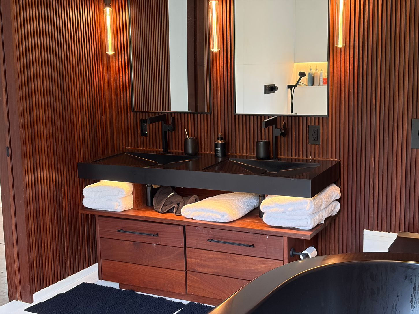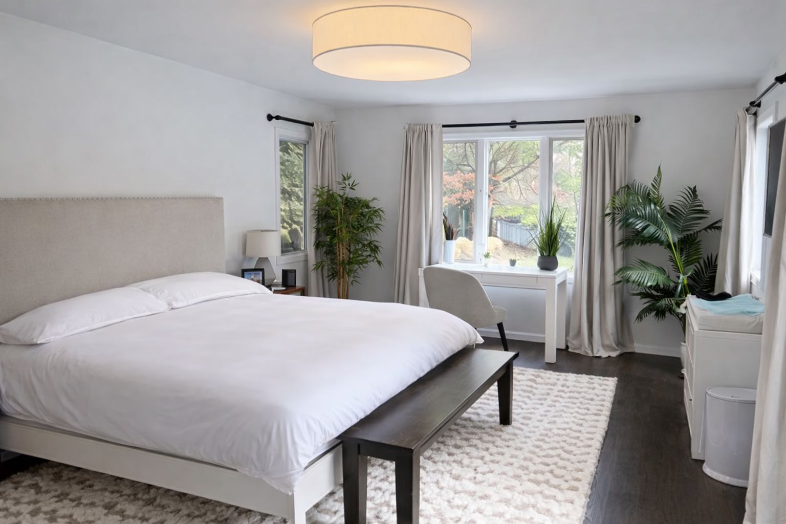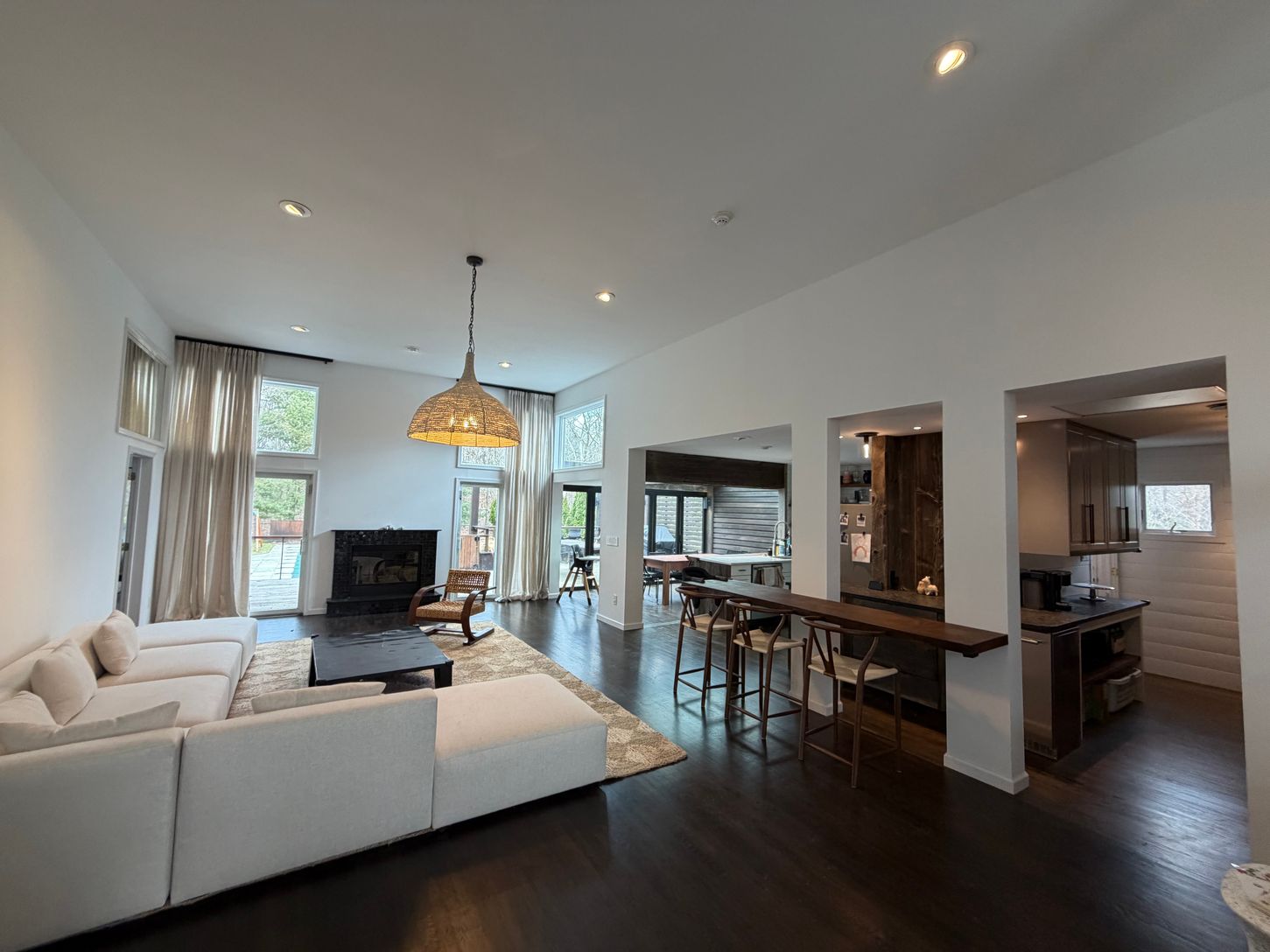 Spend your August in a gorgeous post modern style home with five bedrooms, heated pool and bright living areas throughout. It is surrounded by mature landscaping and set back from the road. There is an open kitchen that looks out on to the pool with a lower level that includes a screening room, two more bedrooms with a spa style bath. From the primary bedroom you can walk out to the pool for an early swim. The home exudes style and comfort an