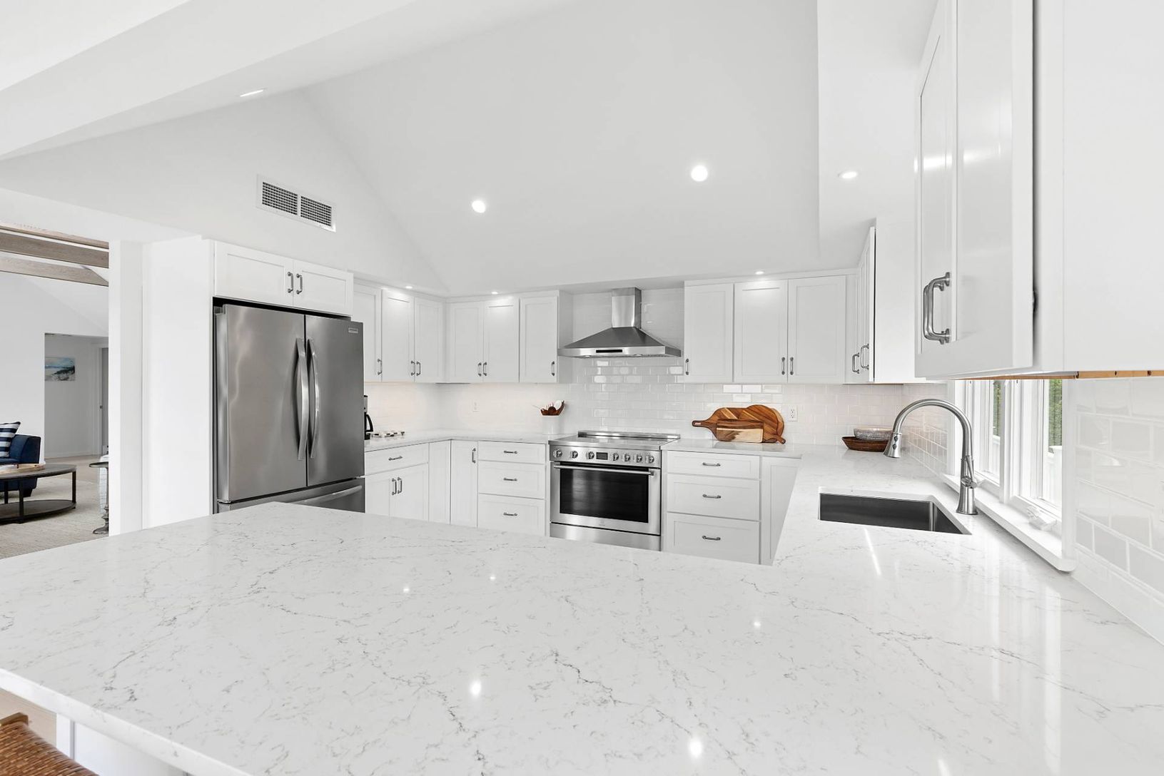 This beautiful rental in the heart of the Westhampton Beach Estate Section offers unparalleled open bay views from the living room, dining area and the totally renovated kitchen. Family and guests will have sweet dreams in the en-suite primary bedroom, ensuite guest bedroom and two additional guest bedrooms and bath. Outside you'll enjoy the heated gunite pool and brick terrace with over 2,000 square feet of decking overlooking Quantuck Bay wi
