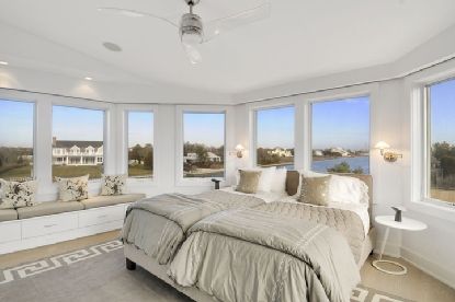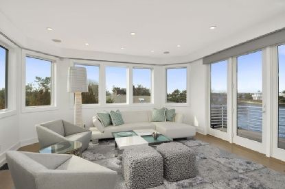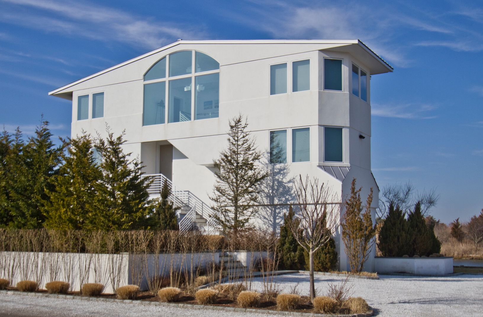You'll feel like you're living on a luxury boat in this new Jay Sears-designed Modern showstopper located on the Quogue Canal on Dune Road. Compact in design but big in charm and use of space, this 2 bedroom, 2 ½ bath home offers the finest in custom finishes and materials, from the 3-floor elevator to the Brazilian wood kitchen cabinets and motorized window treatments. The white stucco exterior, white interior, walls of glass to let in the wa
