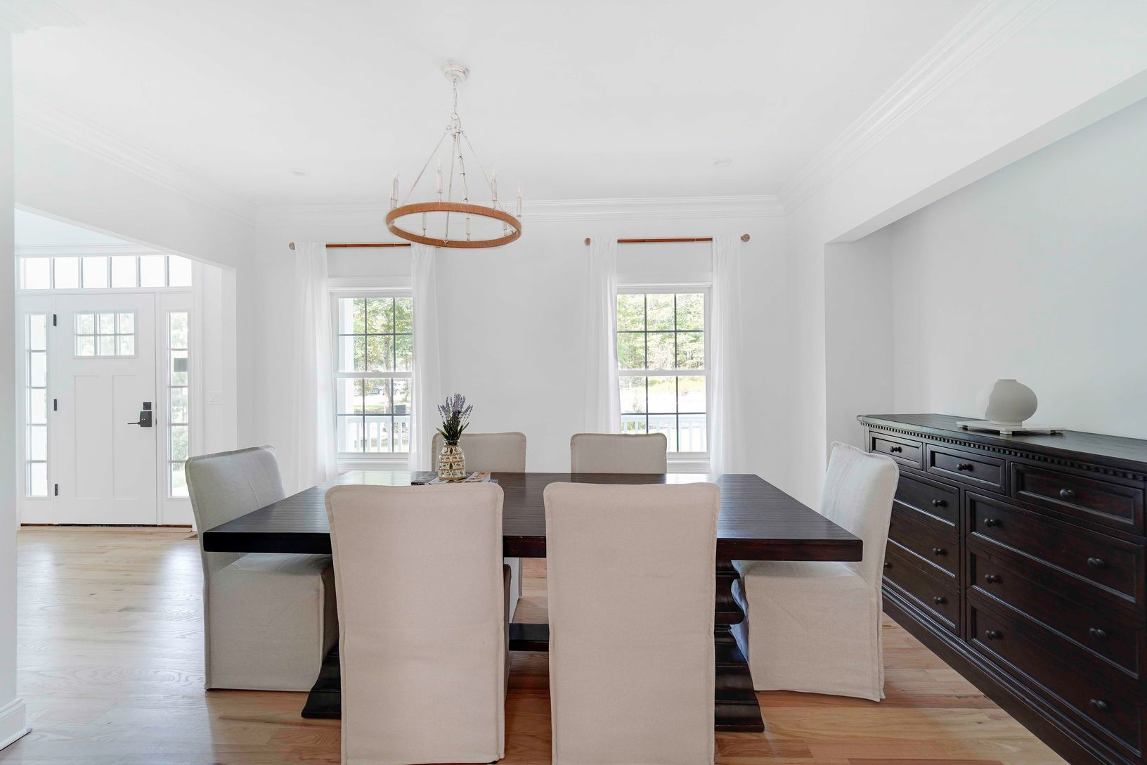 ** Will rent any two weeks or longer all winter!!! Escape to the Hamptons and indulge in the ultimate summer retreat at this brand-new, luxurious rental in Hampton Bays. This exquisite new construction boasts 2,600 square feet of meticulously designed living space on over half an acre, offering unparalleled comfort and style. Step inside and be greeted by an open foyer and soaring high ceilings that create an immediate sense of grandeur. The