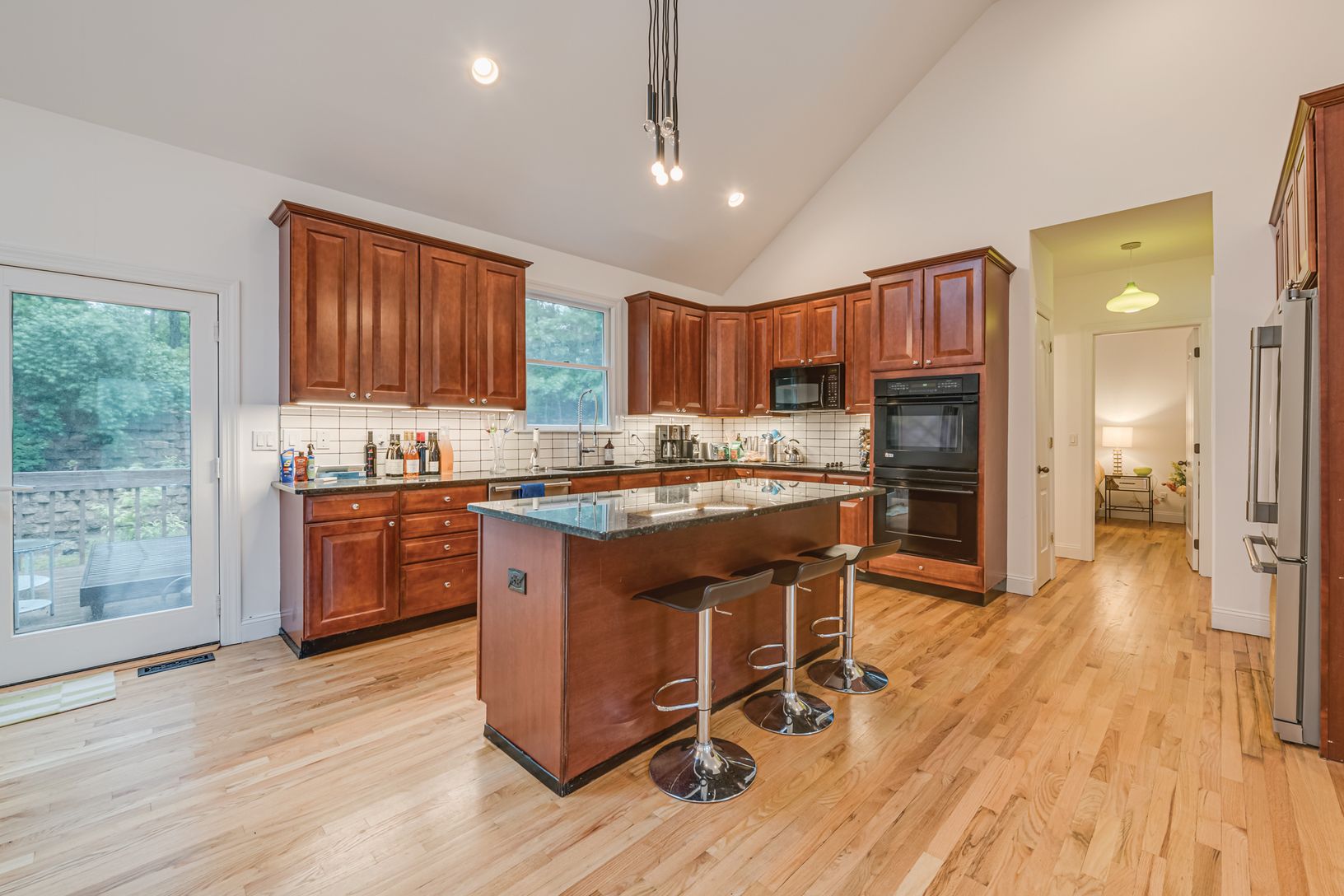 Spacious renovated Victorian ranch with attached garage has an open floor plan perfect for entertaining. Great room with fireplace, formal living room, gourmet kitchen with granite countertops and six foot center island. The master bedroom suite includes walk-in closet and bathroom with Jacuzzi tub and six foot wide tumbled marble shower. Two sets of patio doors bring you out onto a spacious deck. The backyard is a totally private setting wit