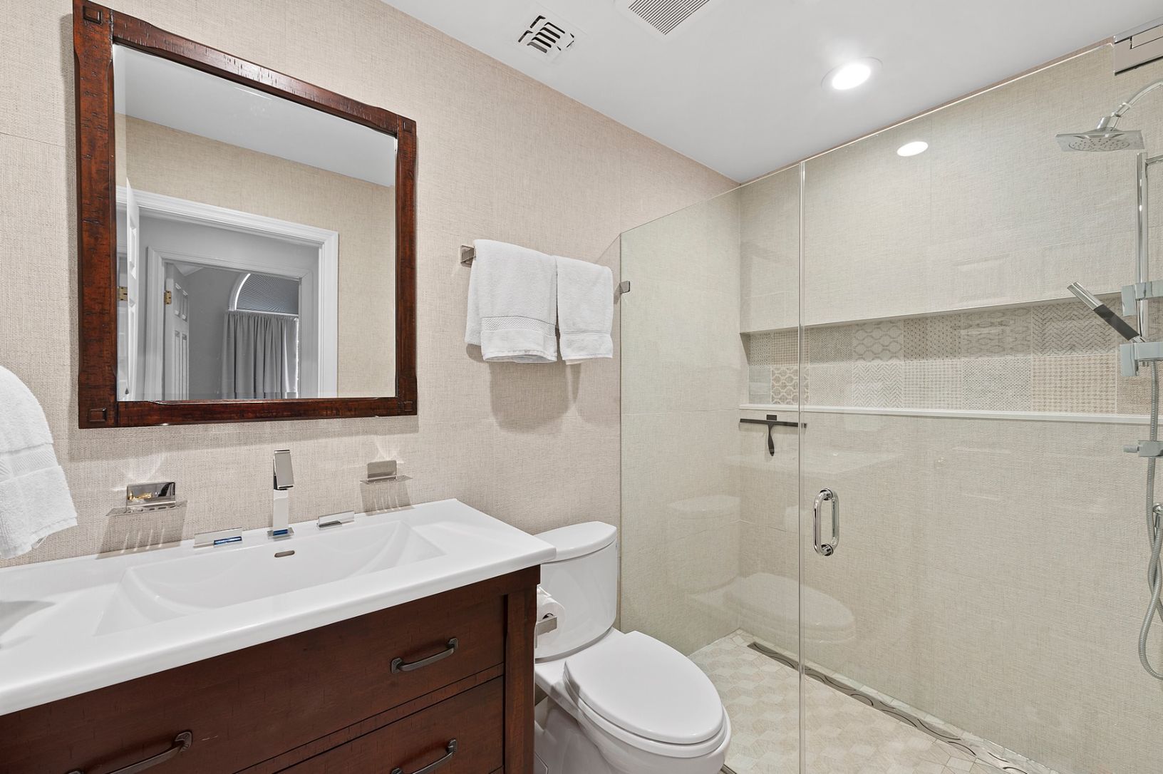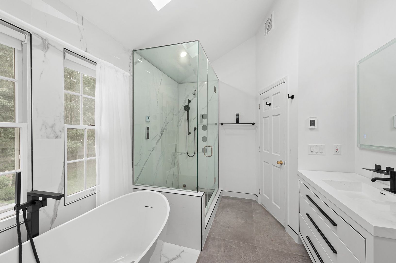Luxury living awaits in this exceptional 5 bedroom Southampton home, gracefully positioned on a sprawling acre of land. Step inside and be greeted by the epitome of modern elegance, where an open-style living room seamlessly transitions into the breakfast area and a luxurious kitchen with stainless steel appliances. Adjacent to the kitchen, you'll find a sophisticated dining room adorned with a dazzling chandelier, perfect for hosting memorabl