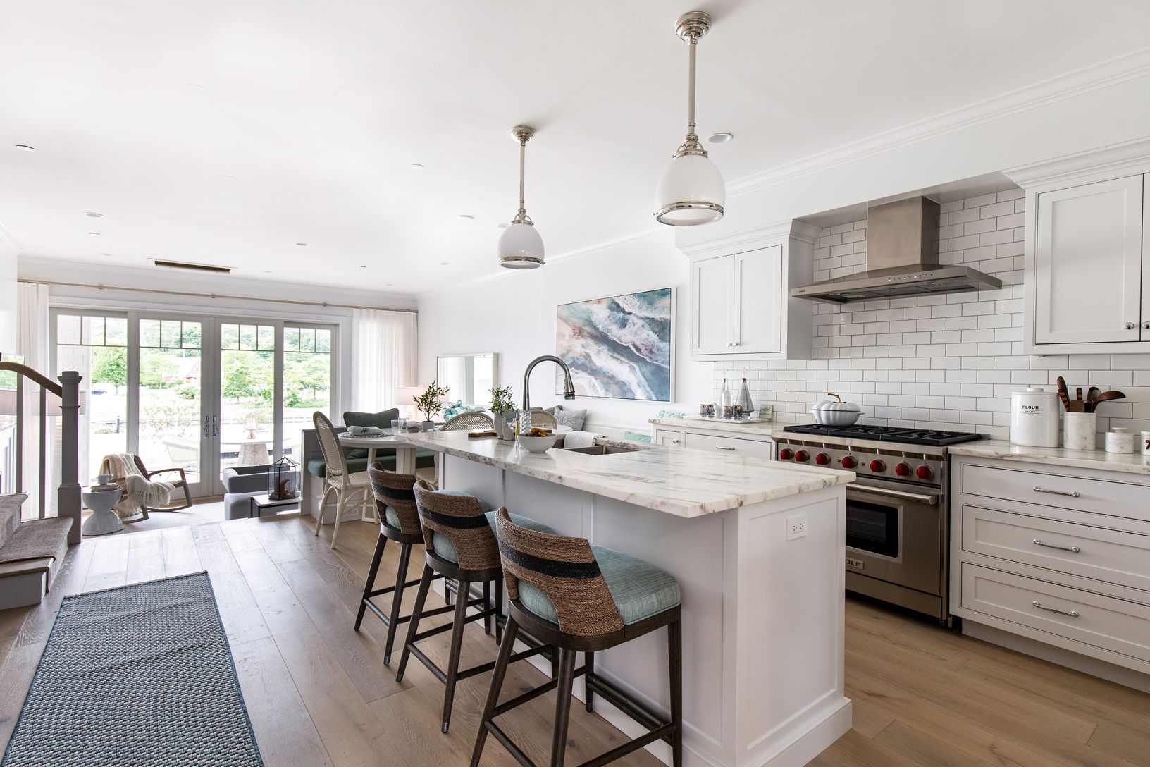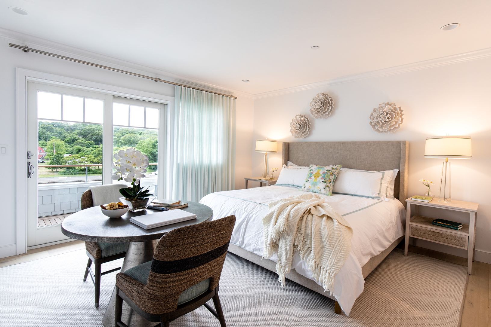 This spacious two bedroom, two and half bath triplex townhome features an open Kitchen with Shaker-style cabinets and state-of-the-art appliances. The light-filled sunken Living room opens directly to a covered porch and terrace and is adjacent to dining room and open kitchen with an island. The townhome enjoys 9-foot ceilings, shiplap cladding, white oak floors and a fireplace. Large windows offer tranquil views of lush landscaping and shimme