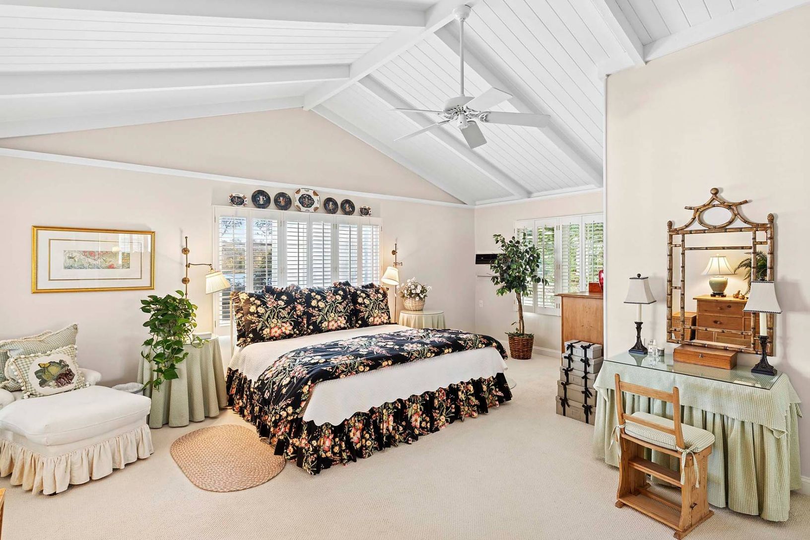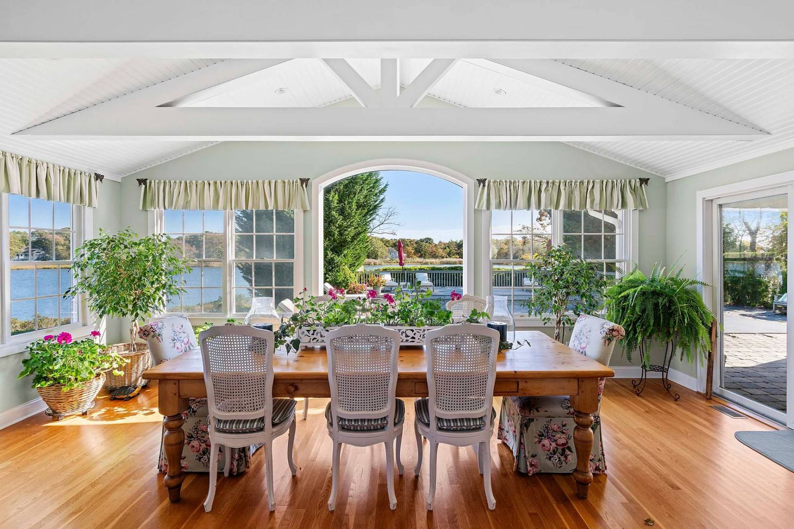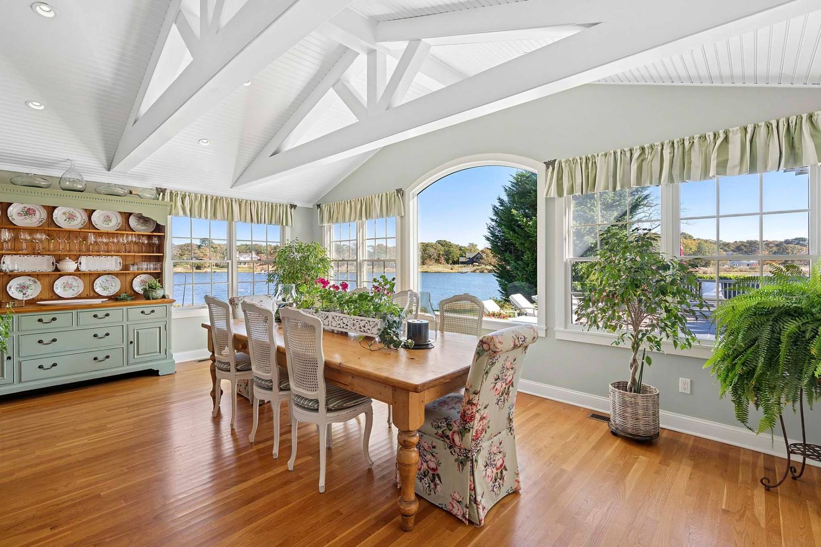 One of the first things you'll notice about this property is just how private and special it is, from the lush landscaping dotted with decades-old specimen trees to the carefully tended English gardens overlooking more than 320' of Quantuck Bay frontage. Located in the historic hamlet of Quiogue (between Quogue and Westhampton Beach), the 1.5-acre property was once part of Quantuck Bay Farms, owned by the Conklin family to service its magnific