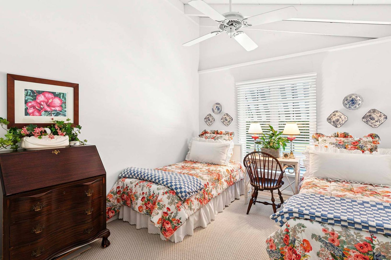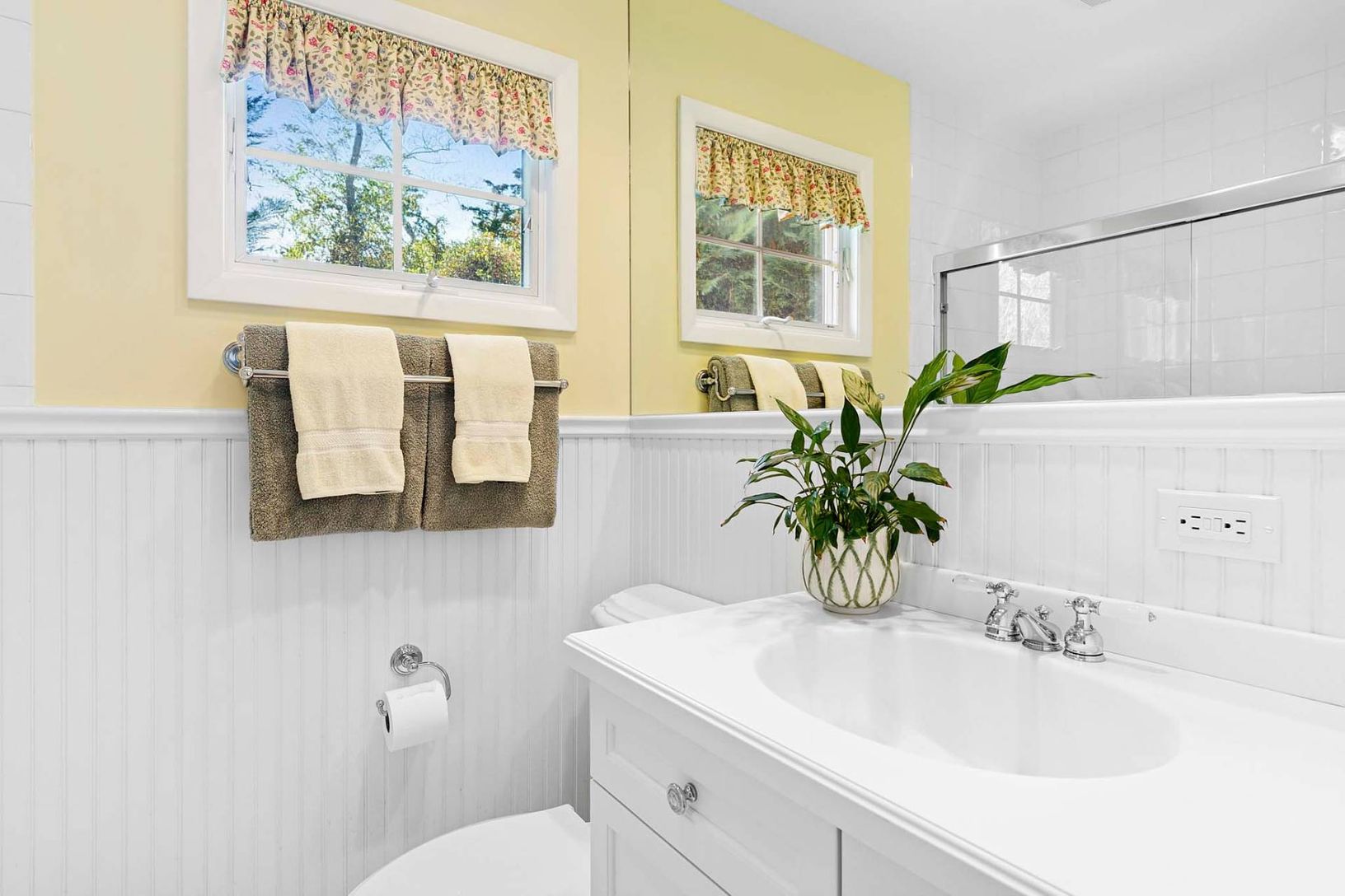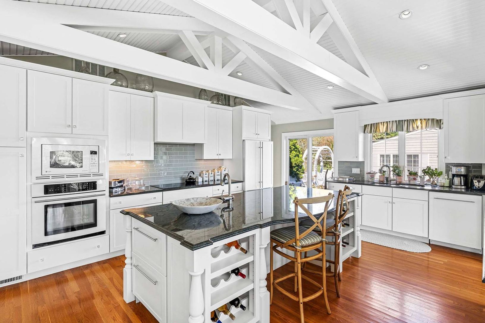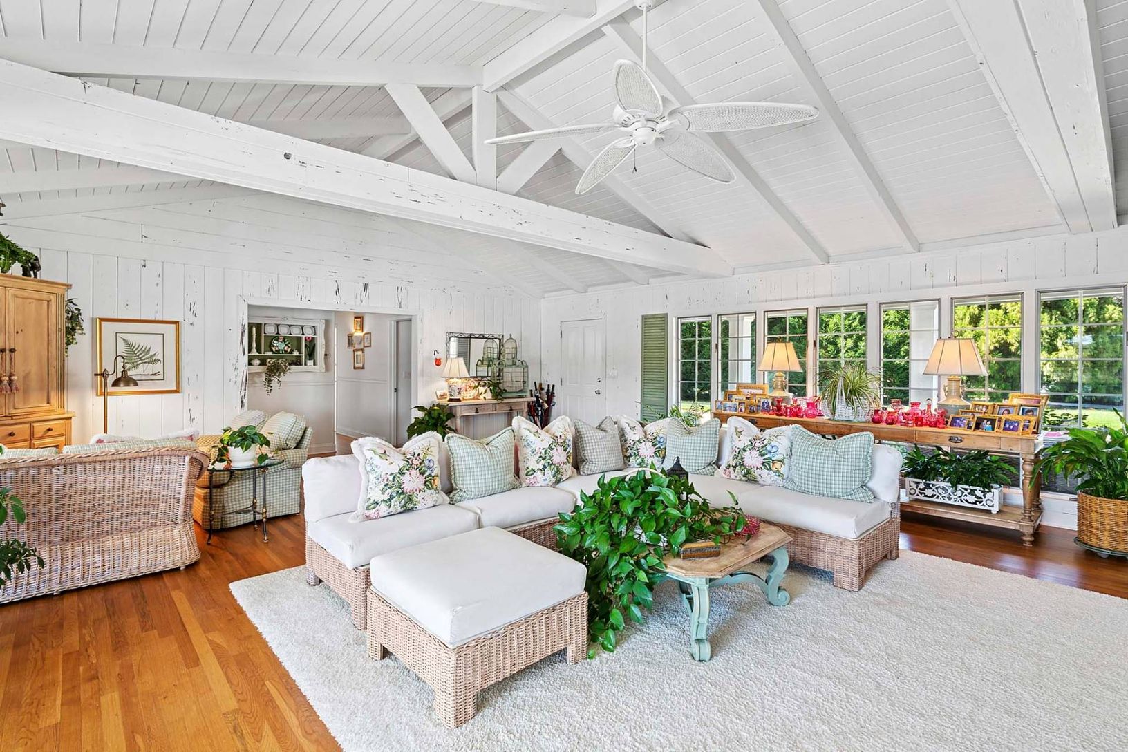 One of the first things you'll notice about this property is just how private and special it is, from the lush landscaping dotted with decades-old specimen trees to the carefully tended English gardens overlooking more than 320' of Quantuck Bay frontage. Located in the historic hamlet of Quiogue (between Quogue and Westhampton Beach), the 1.5-acre property was once part of Quantuck Bay Farms, owned by the Conklin family to service its magnific