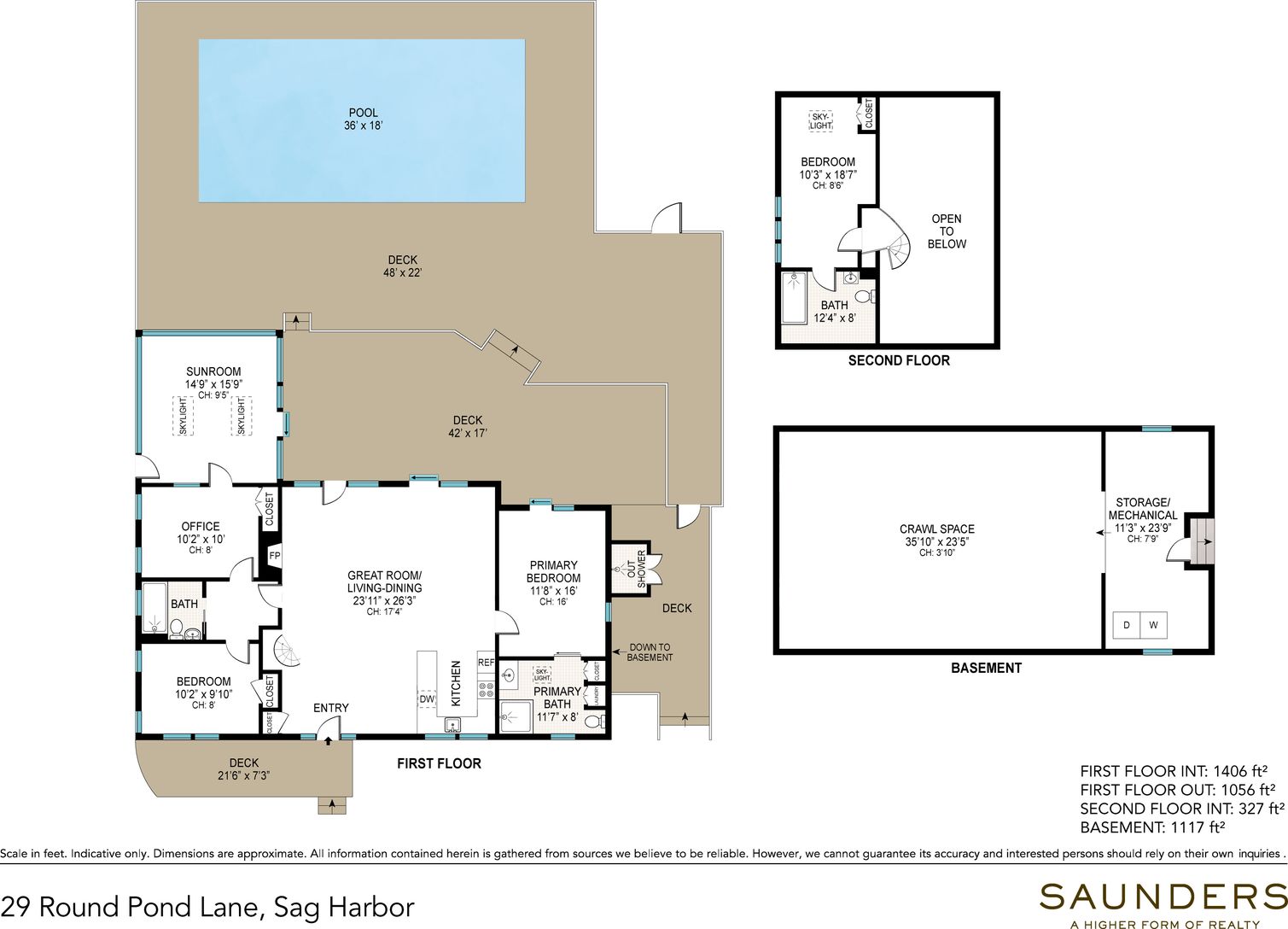 Nestled on 1.85 serene pondfront acres on Little Round Pond, this 3-bedroom, 3-bath home with pool rests at the near fringe of Sag Harbor Village. Whether you choose to enjoy the renovated home as is or embark on further transformation, this canvas of opportunity invites you to shape it according to your vision. The open floor plan, accentuated by towering ceilings, sets the stage. The generously proportioned, sunlit great room combines a livi