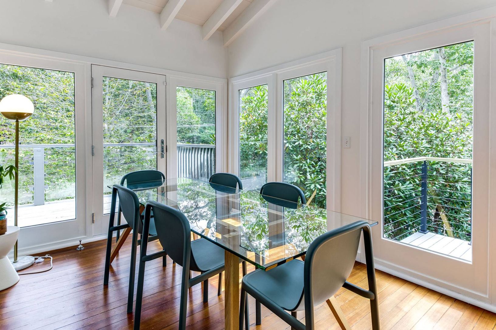 Just past Maidstone Park and Beach in one of East Hampton's most discreet coastal neighborhoods, this property offers a rare opportunity to enjoy a lifestyle that is both elevated and effortless. Sited on a shy half acre that enjoys coveted docking rights at Lion Head Beach and Marina, this contemporary home with a heated pool balances function and leisure with intention: 4 bedrooms, including a vaulted-ceiling primary, 2 full baths, and gener