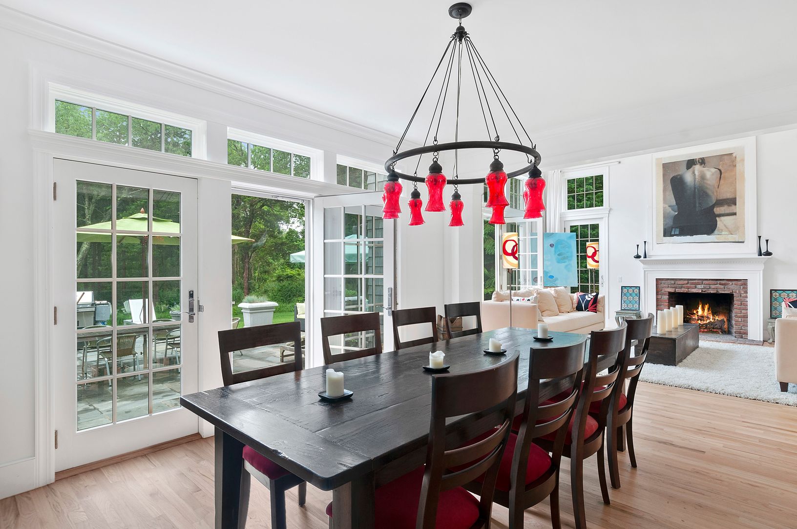 This attractive four-bedroom, three and one-half-bath residence is privately secluded on a beautiful 2.92 acre +/- property. Features include a light-filled living room with fireplace, elegant dining area, epicurean eat-in kitchen, central air-conditioning, and a heated pool.