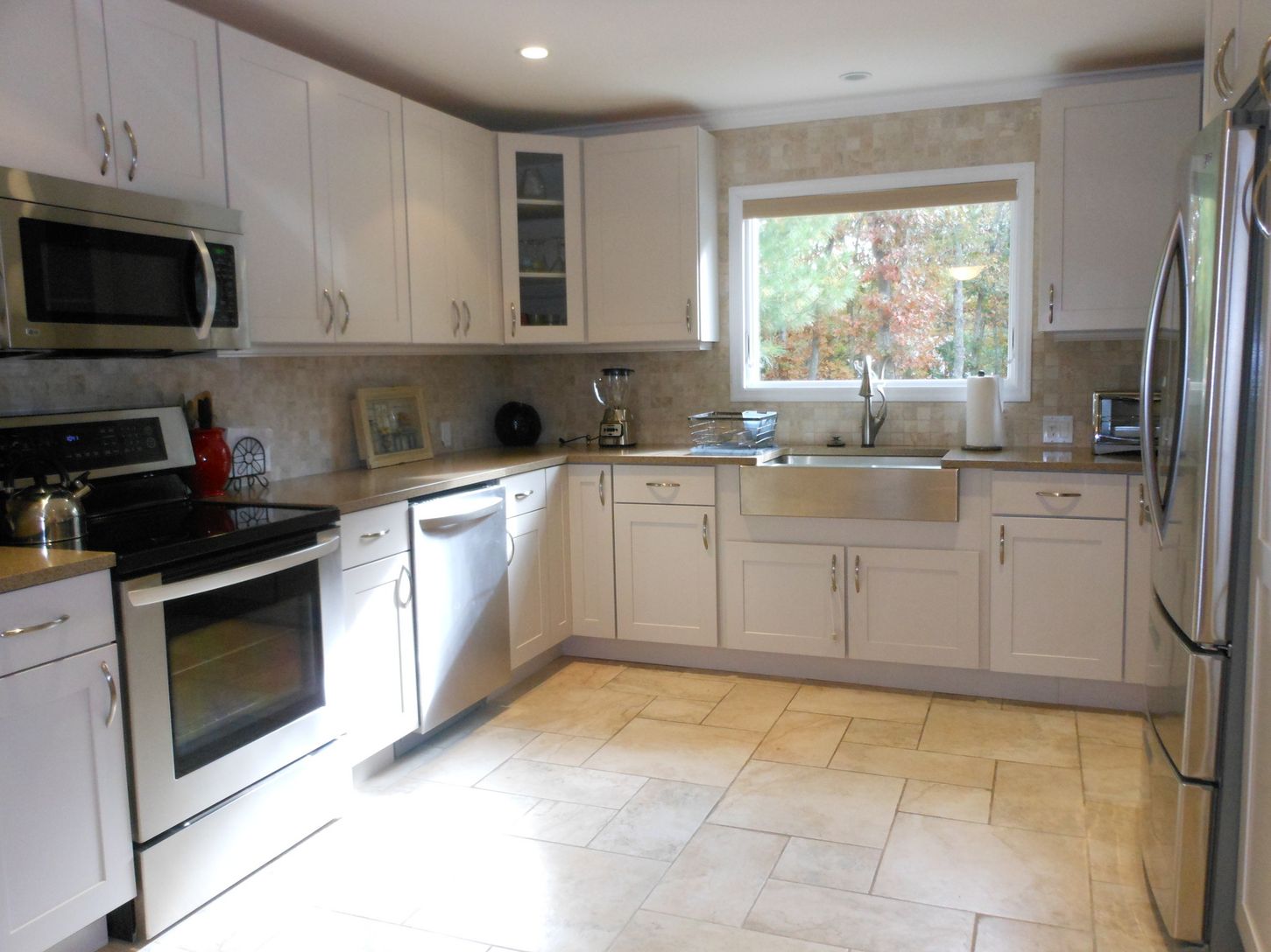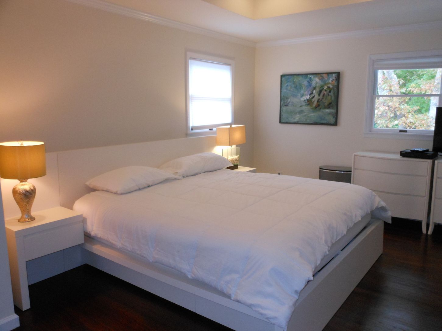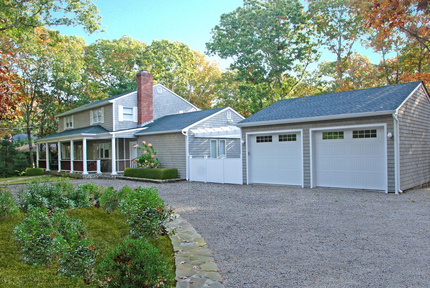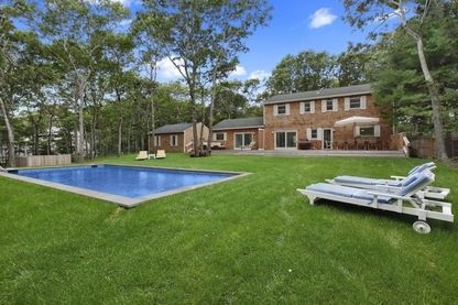 HAMPTONS RENTAL ... Newly renovated in 2011, this light filled 3000 sq. ft. custom 4 bedroom, 3.5 bath home has everything! There are 2 gracious master suites, spacious stainless kitchen adjacent to light filled dining room, living room with stone fireplace, full basement with laundry facility, gunite pool, expansive rear entertaining deck, gracious front covered porch with bluestone, and detached 2-car garage all on a beautifully designer lan