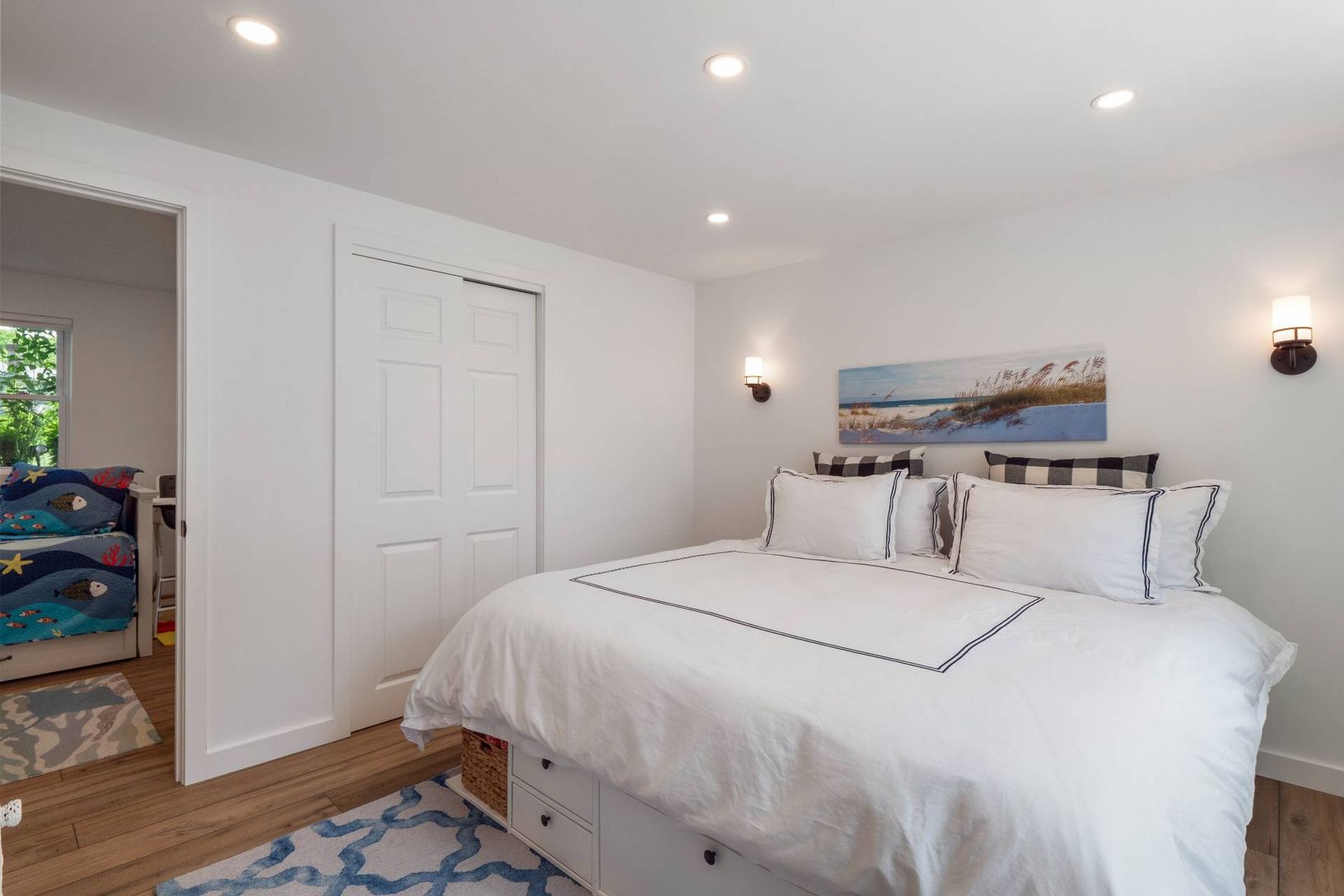 One mile from the beach, this child-friendly waterfront Southampton home is a perfect family destination. Ready for watersports: kayaking, paddleboarding, boating, or jet skiing. Walk down to the beach for a swim in the bay. Return home to a backyard that has
