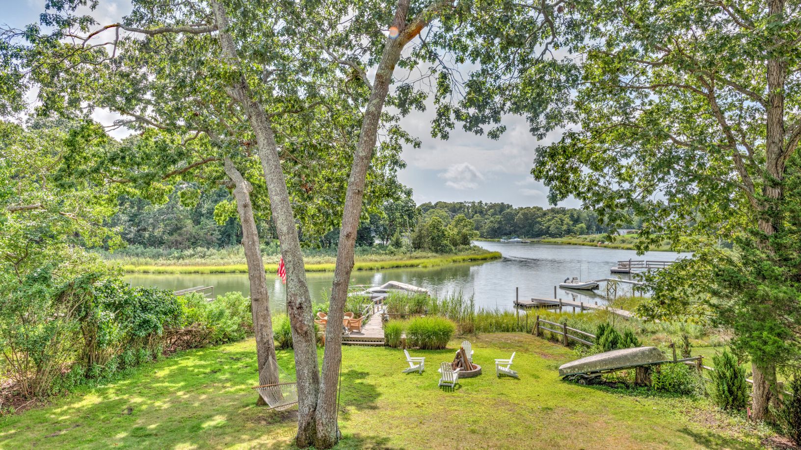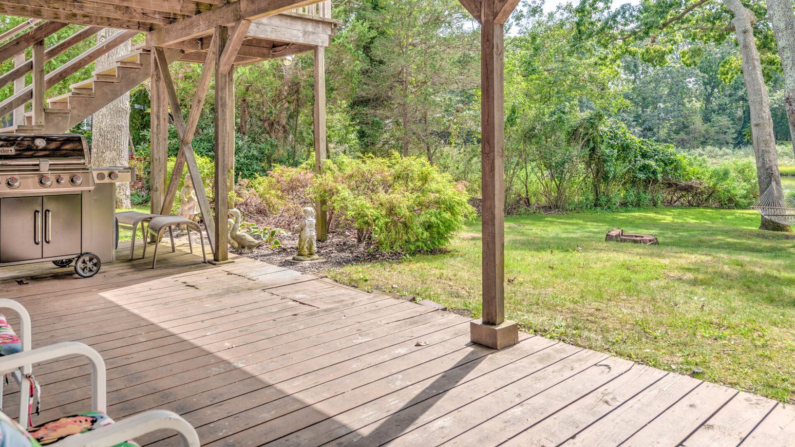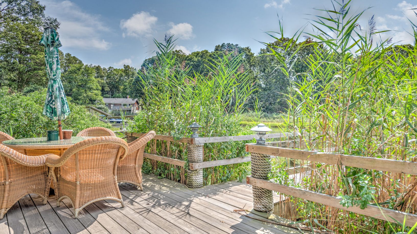 Great waterfront home with dock...keep your boat here, or kayak/paddleboards, etc. at this great property located in Southampton Cove. Upstairs there are three bedrooms and full bath. Large eat in kitchen with all glass views out to the cove, large sliders lead to oversized wrap around deck, perfect for entertaining or