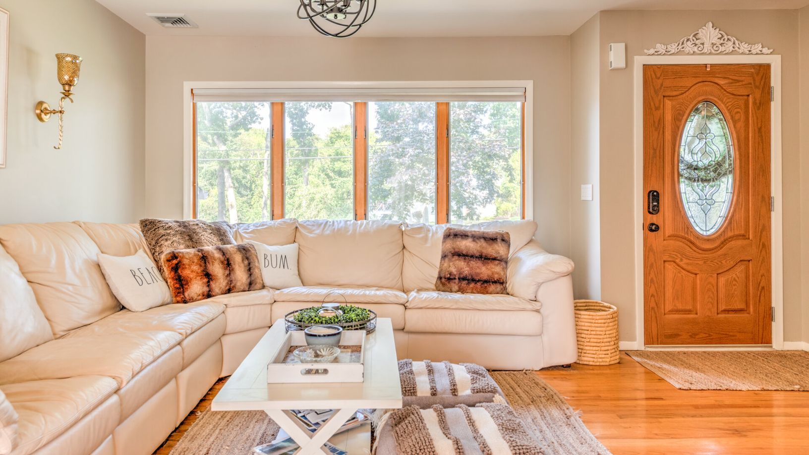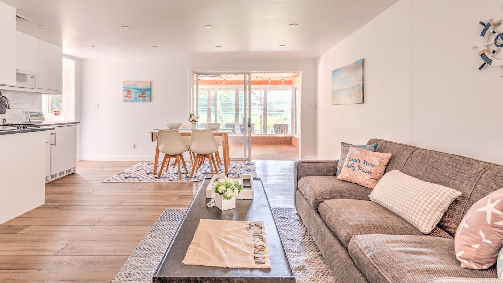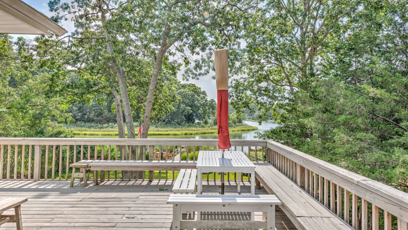 Great waterfront home with dock...keep your boat here, or kayak/paddleboards, etc. at this great property located in Southampton Cove. Upstairs there are three bedrooms and full bath. Large eat in kitchen with all glass views out to the cove, large sliders lead to oversized wrap around deck, perfect for entertaining or