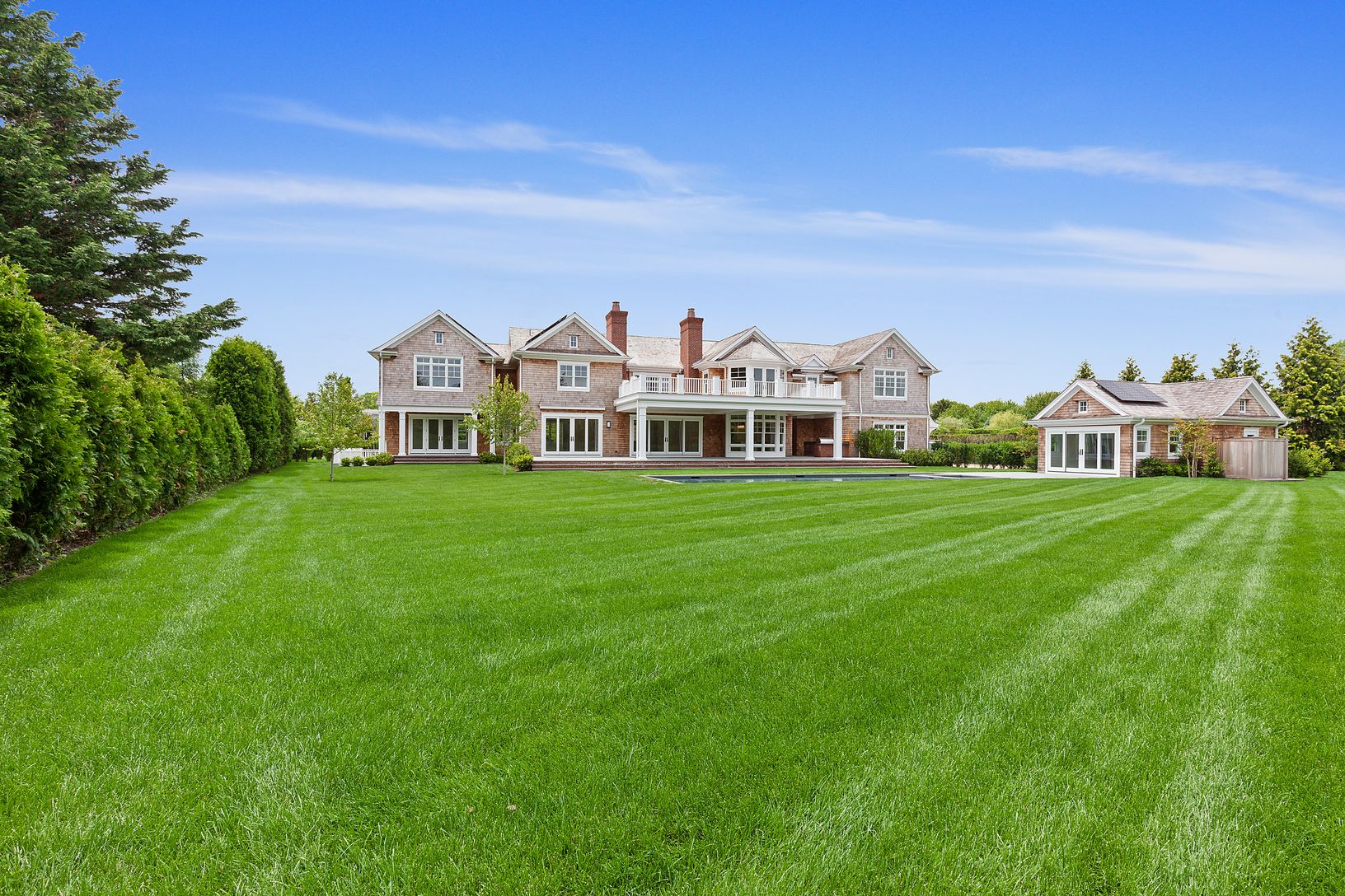 Built by one of the Hamptons' premier builders, this eight bedroom, eight full and one half bathroom house is beautifully designed and constructed. The lower level consists of a recreation room, golf simulator, gym, media room and two bedrooms with an en-suite bathroom. The first floor has an eat-in gourmet kitchen, formal dining room, living room with fireplace, a second master bedroom with en-suite bath, powder room, a full bathroom near ac