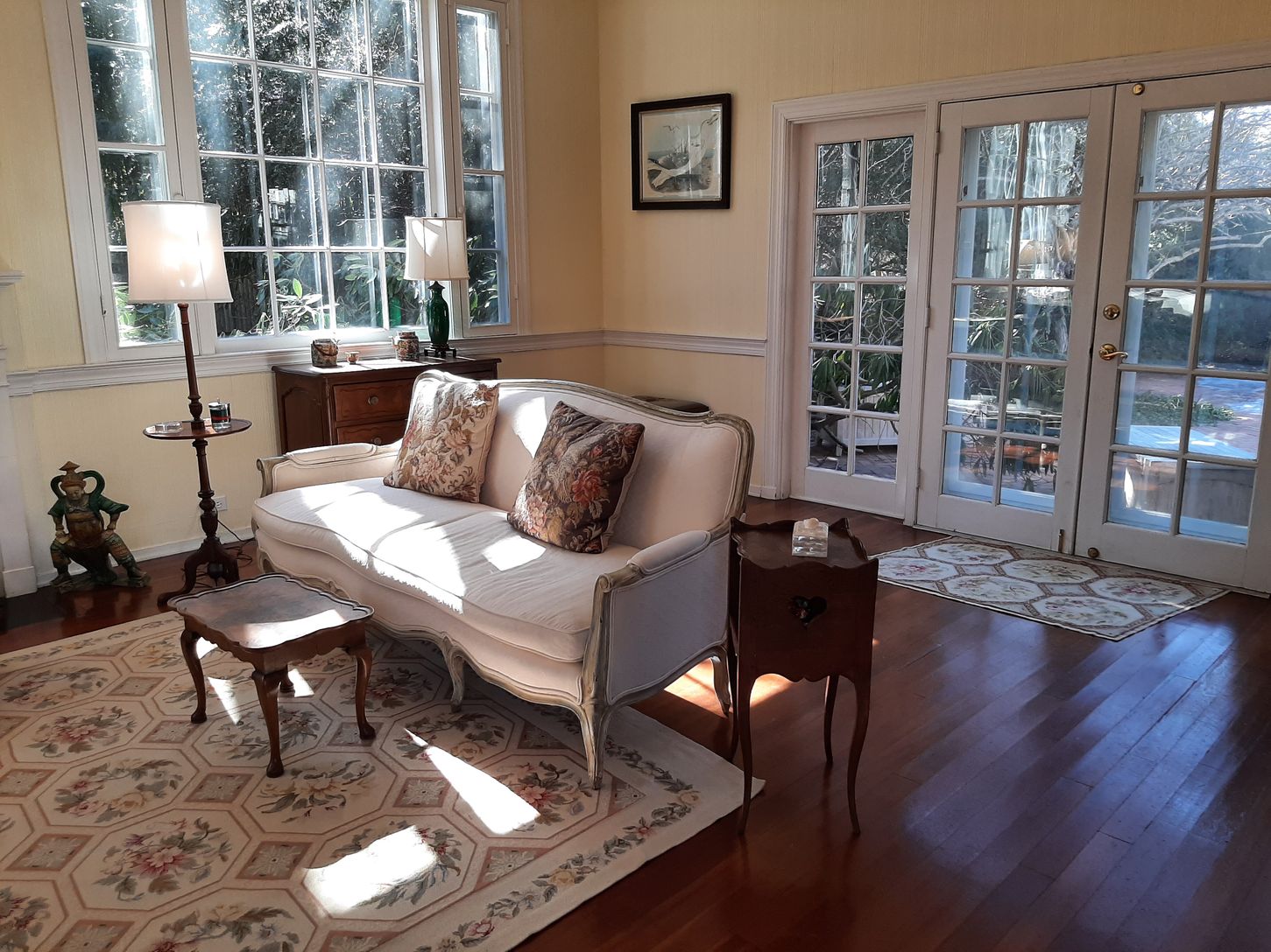 You won't want to miss this rare gem in the estate section of Southampton Village. Private gabled cottage on 2+ beautifully-landscaped wooded acres, complete with a new 55' saltwater pool, This charming, light-filled 3BR, 3-bath home is beautifully sited via a winding gravel drive lined with flowering apple and pear trees opening on a large lawn. French doors throughout, bay windows, high ceilings and hardwood floors on the main level create a