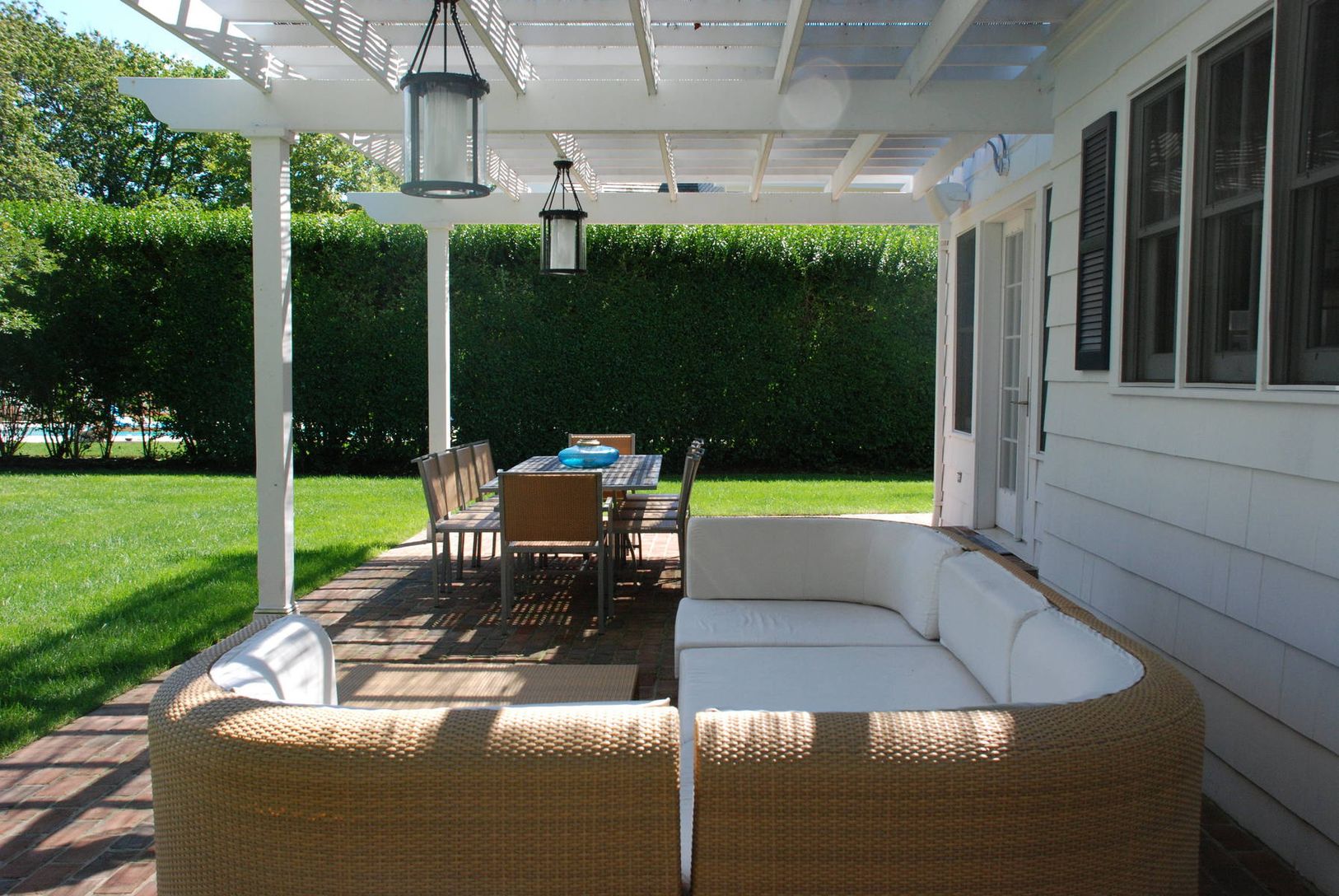 The difference is in the details of this chic traditional south of Toylesome Lane in Southampton Village. Unlock the front door to a classic entrance hall that opens through French doors into the living room with a fireplace, hardwood floors and south facing windows. The casual seating area in the den area opens to the dining table and gourmet kitchen that is outfitted with Boffi finishes, SubZero, stainless appliances, Miele and a marble brea