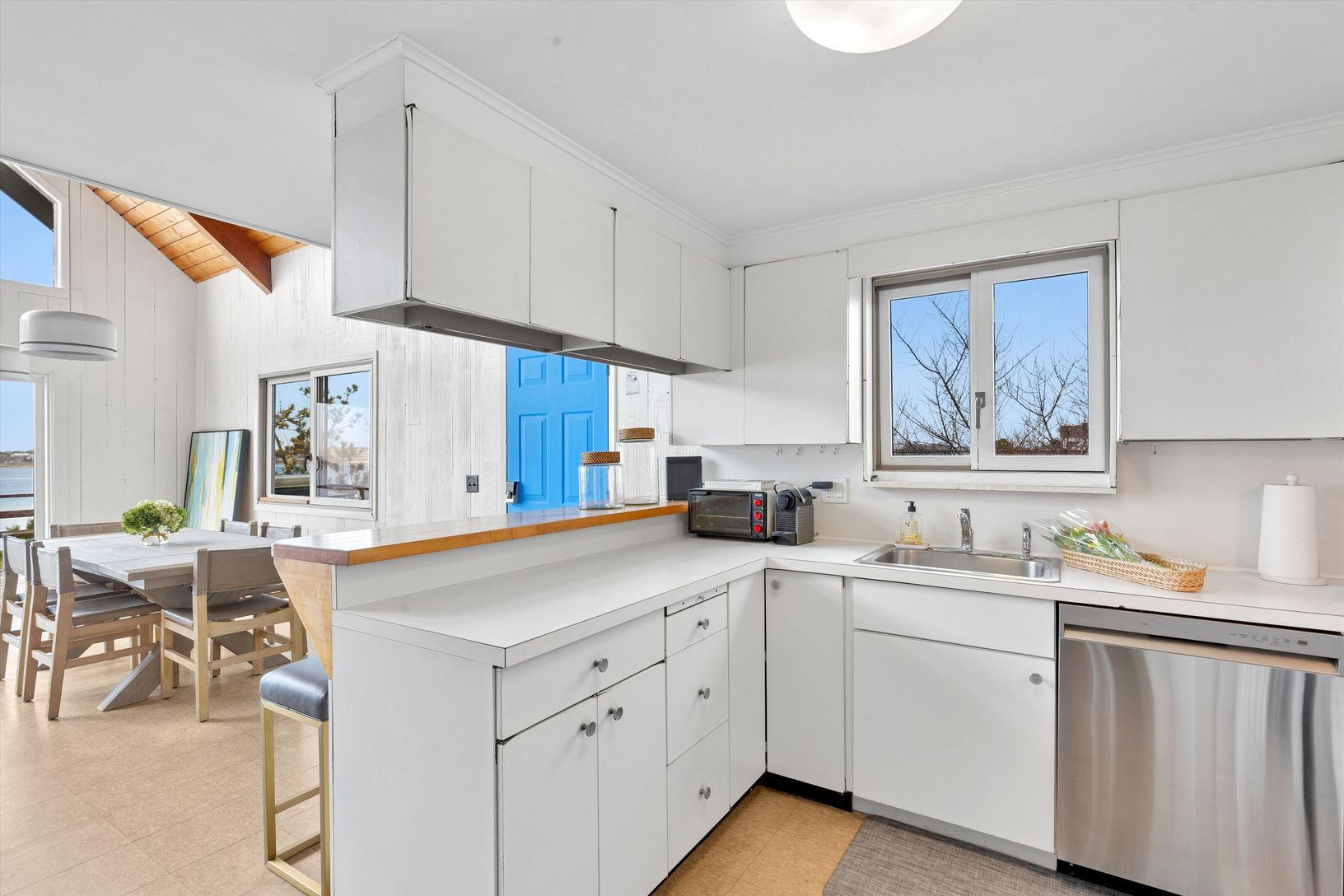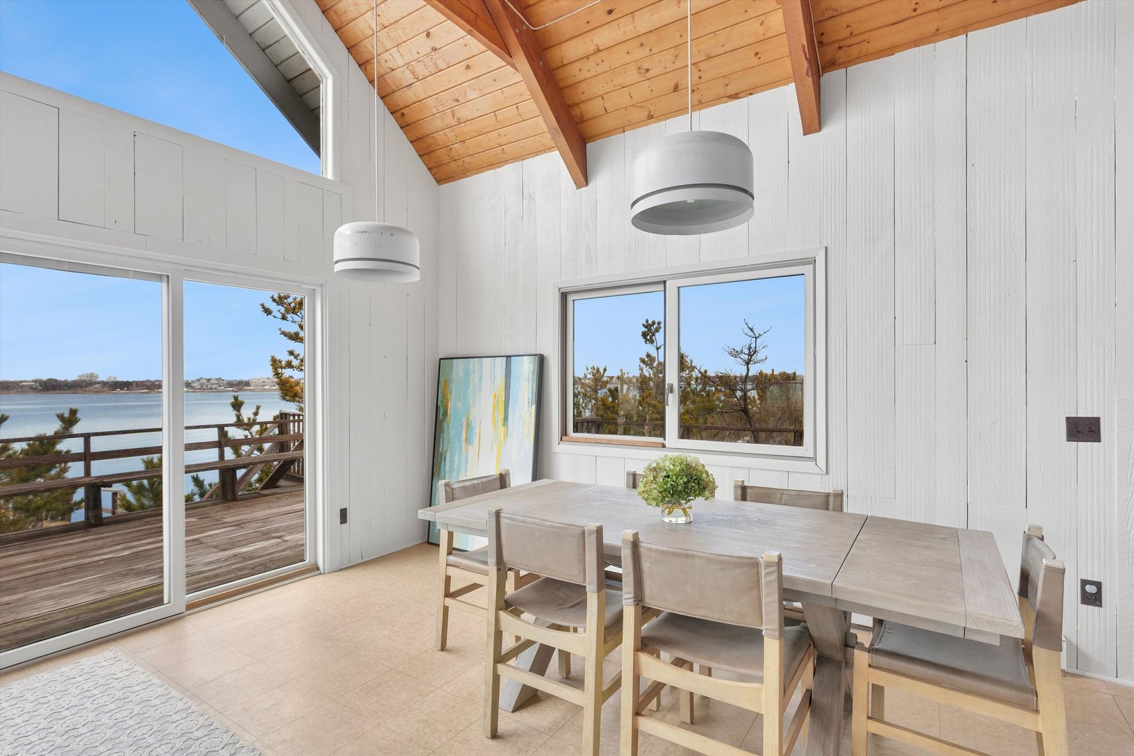 Westhampton Beach Village direct Bayfront cottage with dreamscape water views and your own private Ocean access. Exhale and wash away the stresses of the day, or better yet, work from home here in this super clean and newly redecorated beach bungalow. Offering three bedrooms, two on the first level and a loft-like upstairs en-suite ,equipped with large smart flatscreens and brand new beds. Offer includes incredible Moriches Bay views, your own