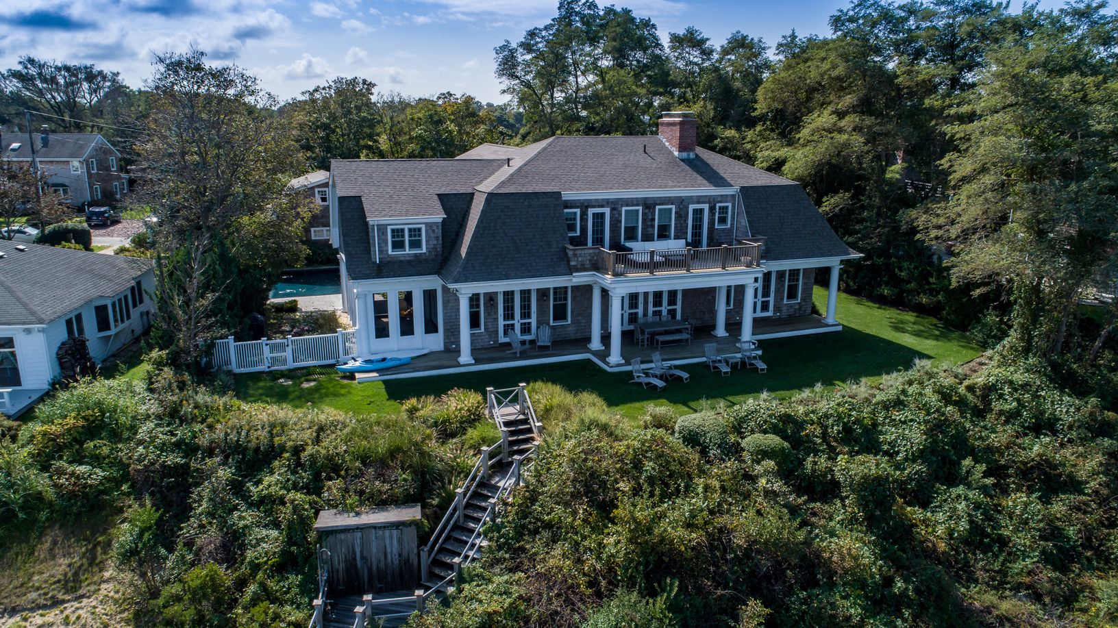 North Sea Beach Colony 3700 sq. ft. 4 bed/4.5 bath waterfront home with First Floor Master and finished basement has the most amazing sunset views. This traditional home with impeccable details and lush landscaping and gunite pool sits atop a 50' elevation overlooking Robins Island and Nassau Point. The three level house, built by Gentry Construction, offers gracious living and dazzling water views from virtually every room. Two Master Suites