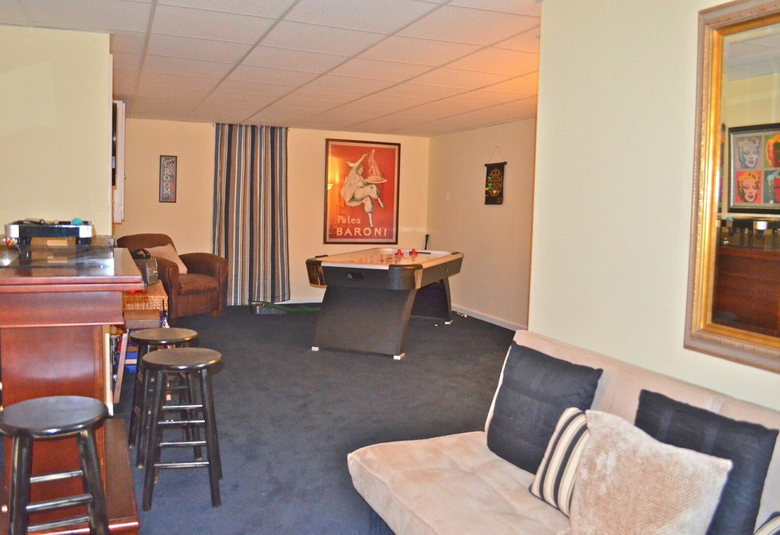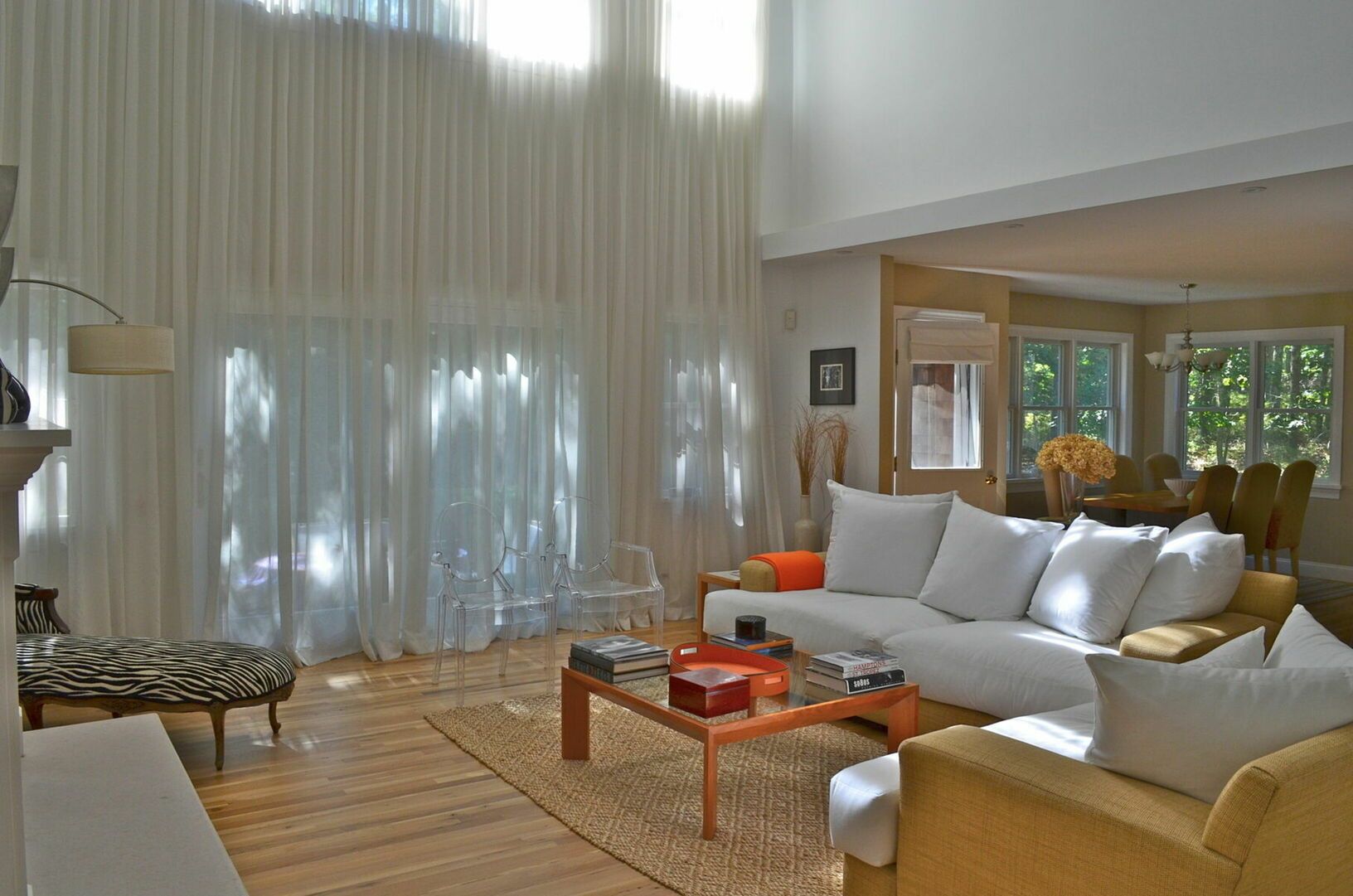 Tastefully furnished and spacious, this four-bedroom, three-bathroom home is located in East Hampton. Fantastic home for relaxing by the pool or entertaining with a great open living and dining space. Primary suite on the first floor with pool patio access. Game room on lower level, central air, eat-in kitchen, and large patio overlooking heated pool make for a fabulous time in the Hamptons.