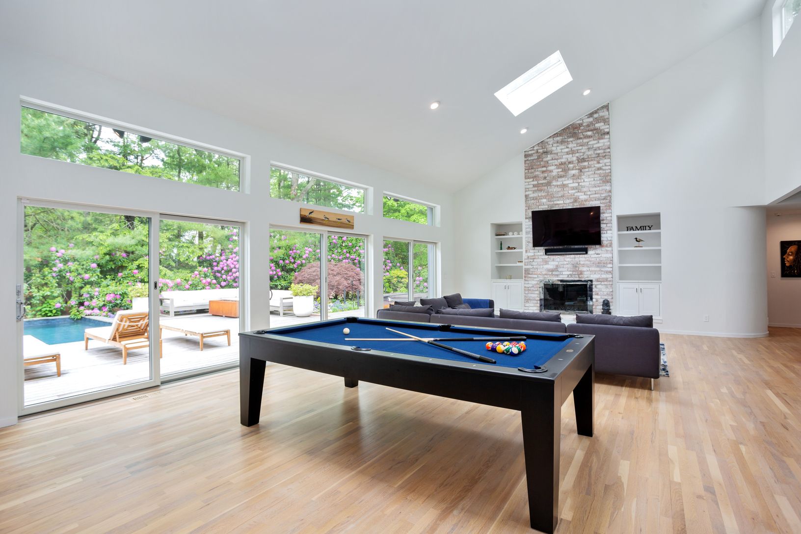 This classic 80's contemporary has been totally updated to the max. Rebuilt to the highest standards a Quogue Village home could have and done by one of the area's finest builders for himself. Spectacular open floor plan great room with fireplace. Modern gourmet kitchen. Baths done to perfection. Lower Level includes gym/workout space can include sauna. In ground Pool, spacious deck for gathering and lounging, Tennis and firepit area