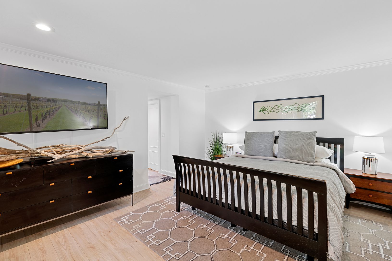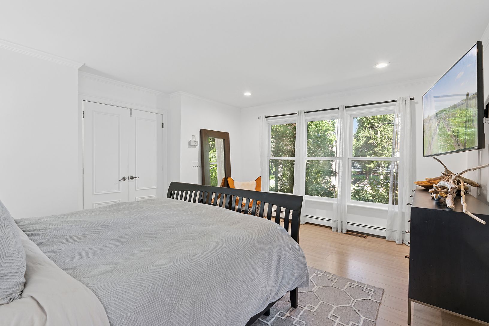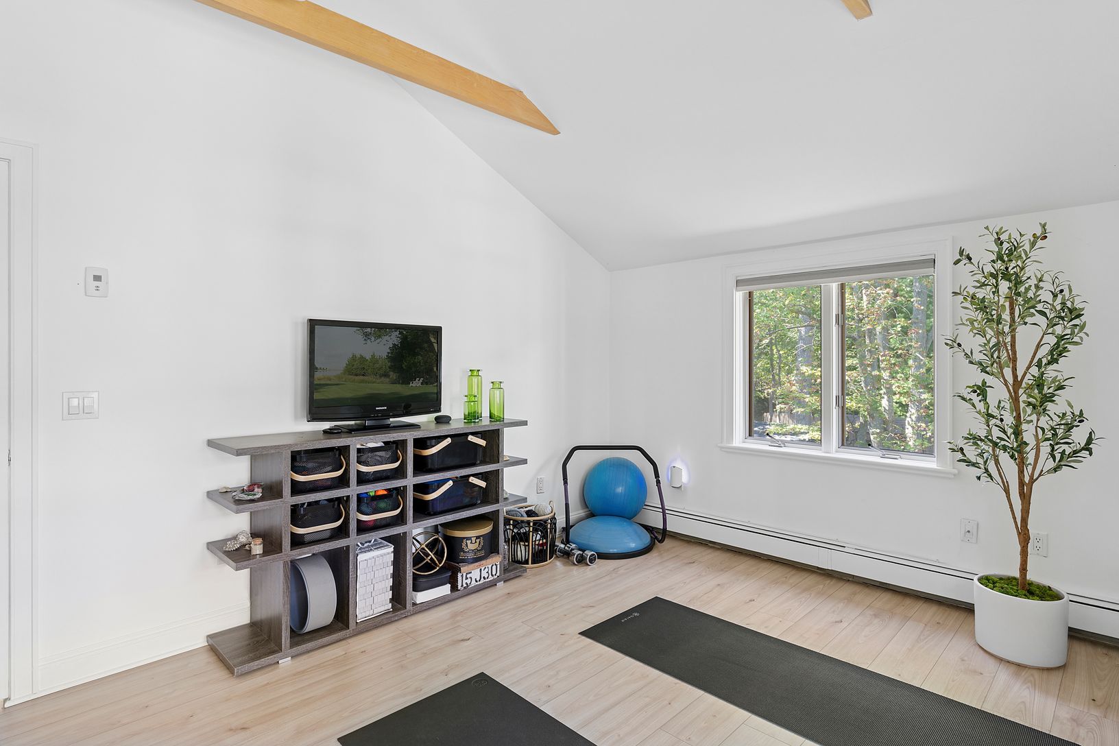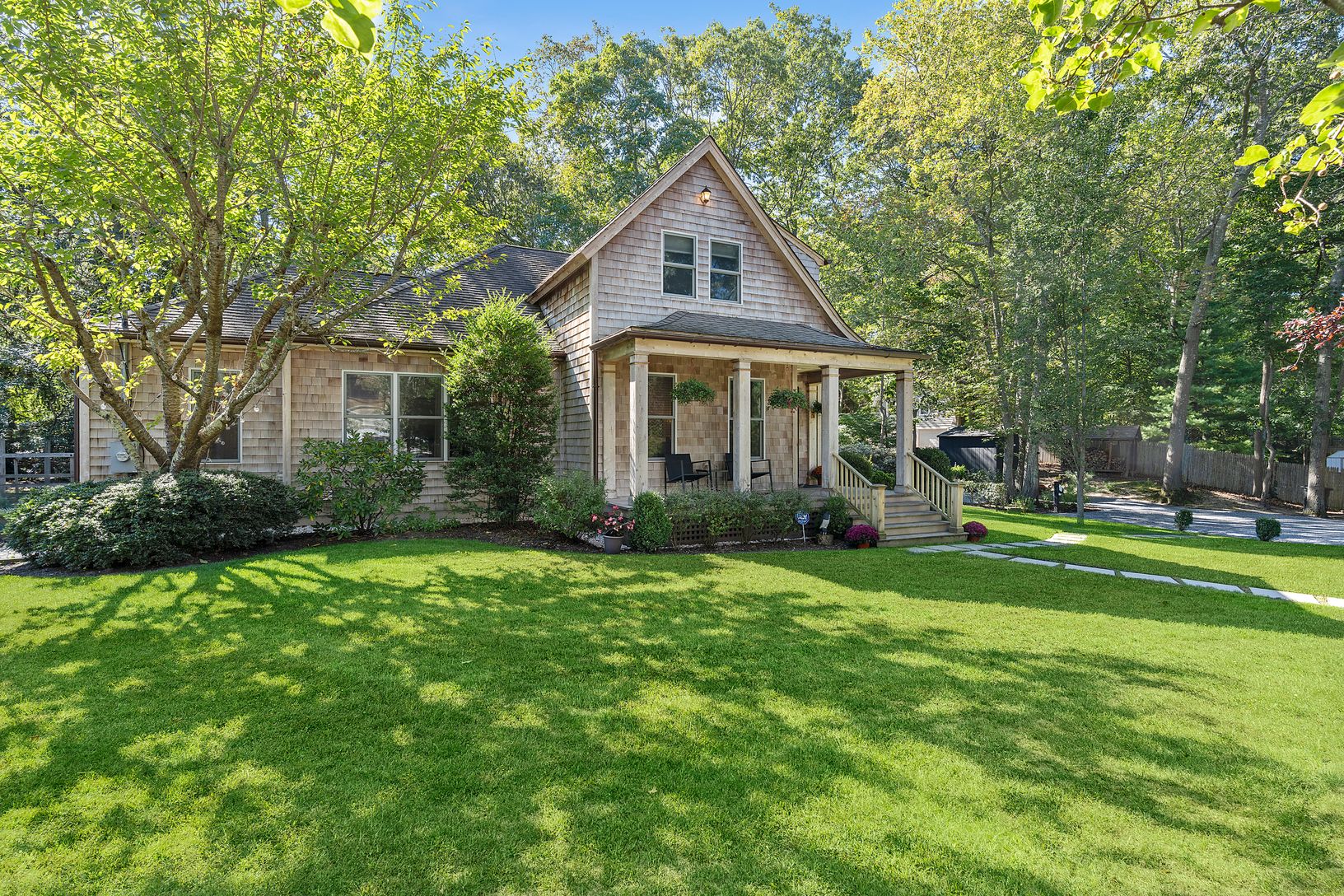 Tucked away at the end of a quiet Wading River lane, 3 Breezy Point Road is where design meets soul. This custom-built gem blends architectural artistry with effortless living - a refined retreat wrapped in coastal calm. Step inside and you'll feel it immediately: soaring ceilings, hand-crafted mahogany doors and windows, and a striking Norman Jaffe-designed fireplace anchoring the living room with quiet confidence. The chef's kitchen is equal